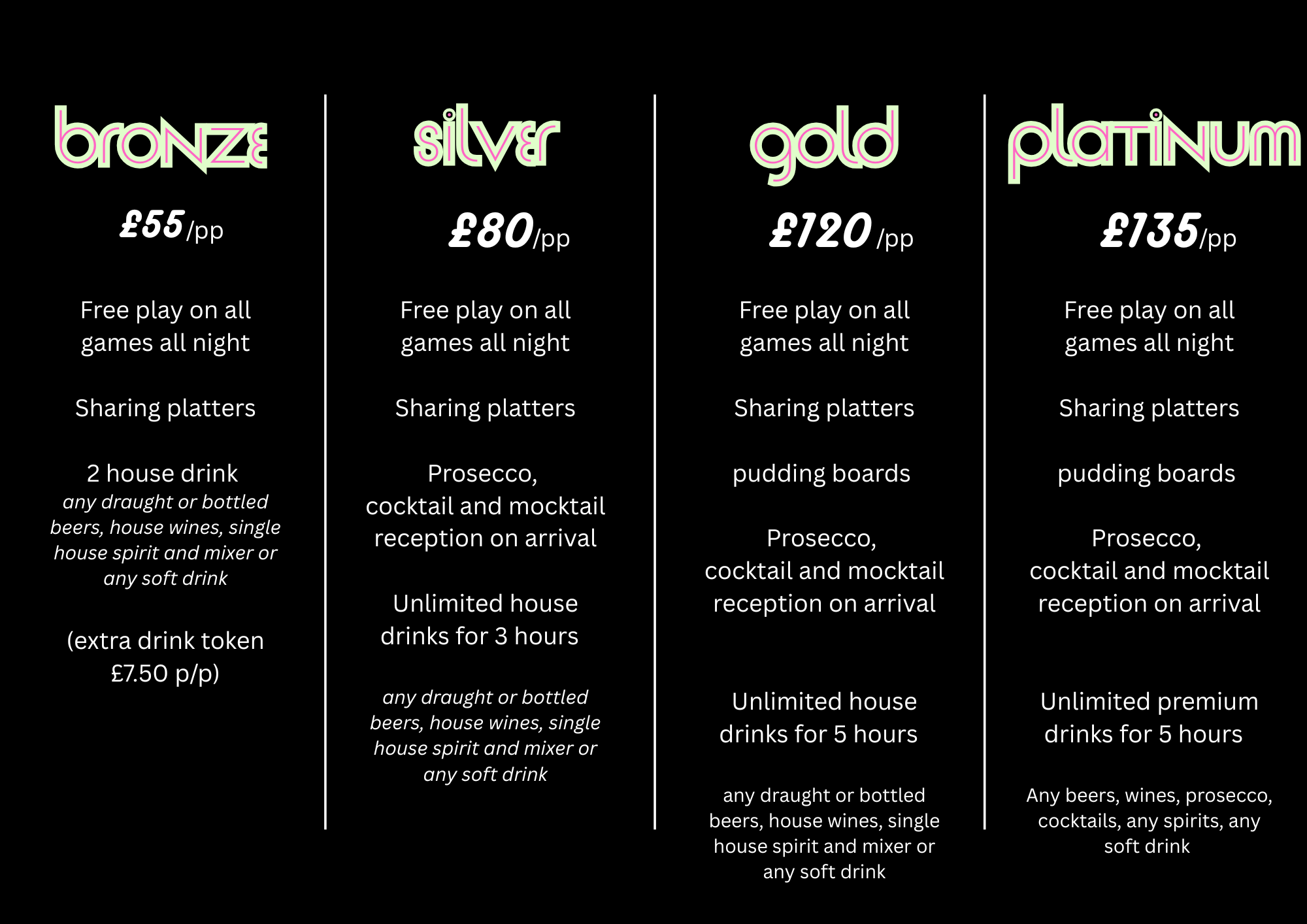 Our Funky Ground Floor Bar Ideal for groups of 30 to 70 people, this lively space is perfect for team socials, birthdays, and private events. Features include: 🍸 Private bar with dedicated service 🎱 Four 8ft American pool tables 🎯 Phoenix soft-tip darts machine ⚽ Tornado foosball table 🎤 Presentation equipment — big HD screens & microphone for speeches, quizzes, or presentations 🎧 iPod dock for your own playlists