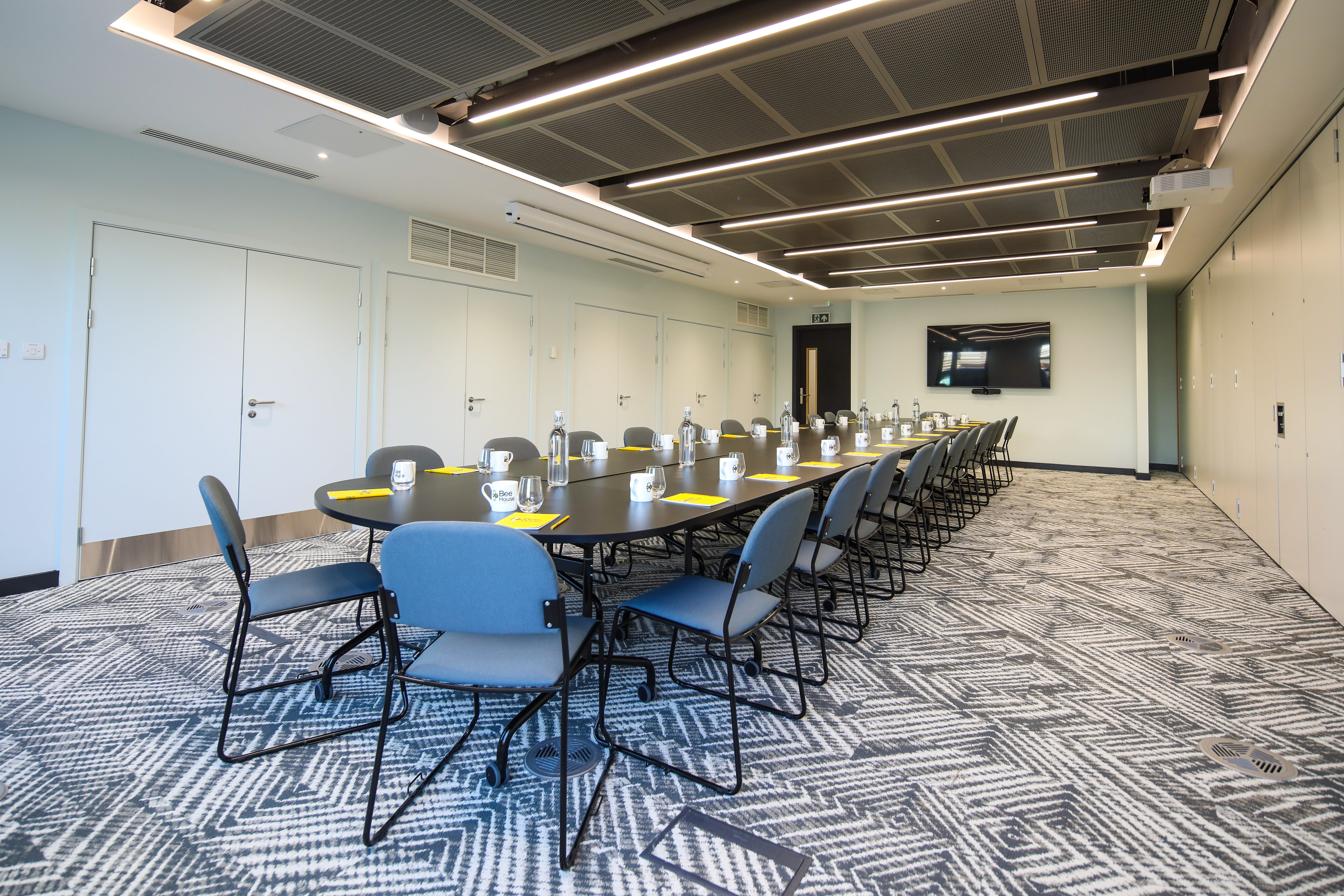 Tupelo is a 50-seat conference room (theatre style), alternative layouts available. Facilities include AV equipment, wireless ClickShare connection, Logitech video conferencing system and stationery. Available on request, flipcharts, lectern and catering from our on-site service provider. Included with Tupelo is the use of the B-Lounge hospitality suite where delegates may help themselves to hot & cold beverages and biscuits.