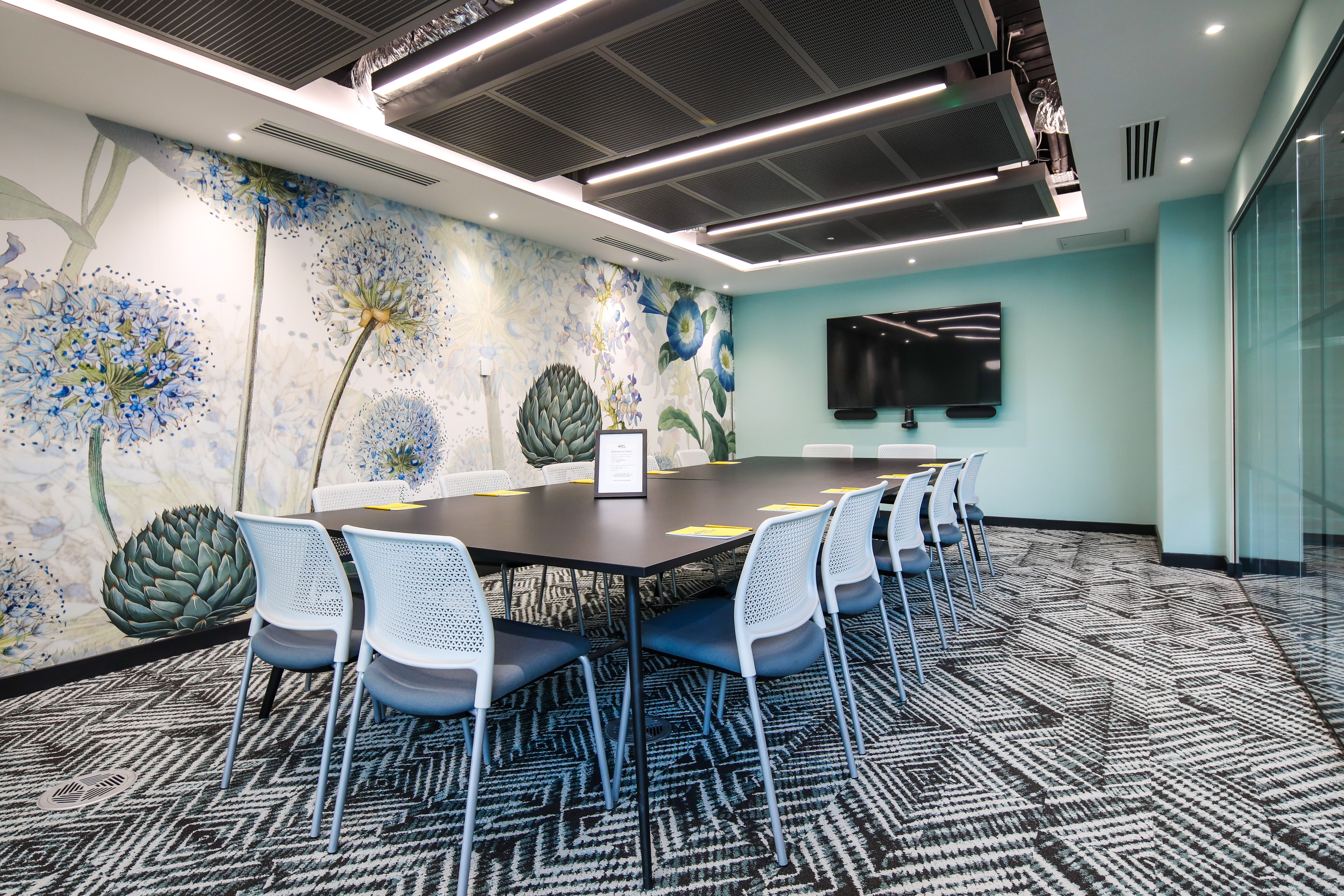 Clover is a 14-seat boardroom layout meeting room. Facilities include AV equipment, wireless ClickShare connection, Logitech video conferencing system and stationery. Available on request, flipcharts and catering from our on-site service provider. Included with Clover is the use of the B-Lounge hospitality suite where delegates may help themselves to hot & cold beverages and biscuits.