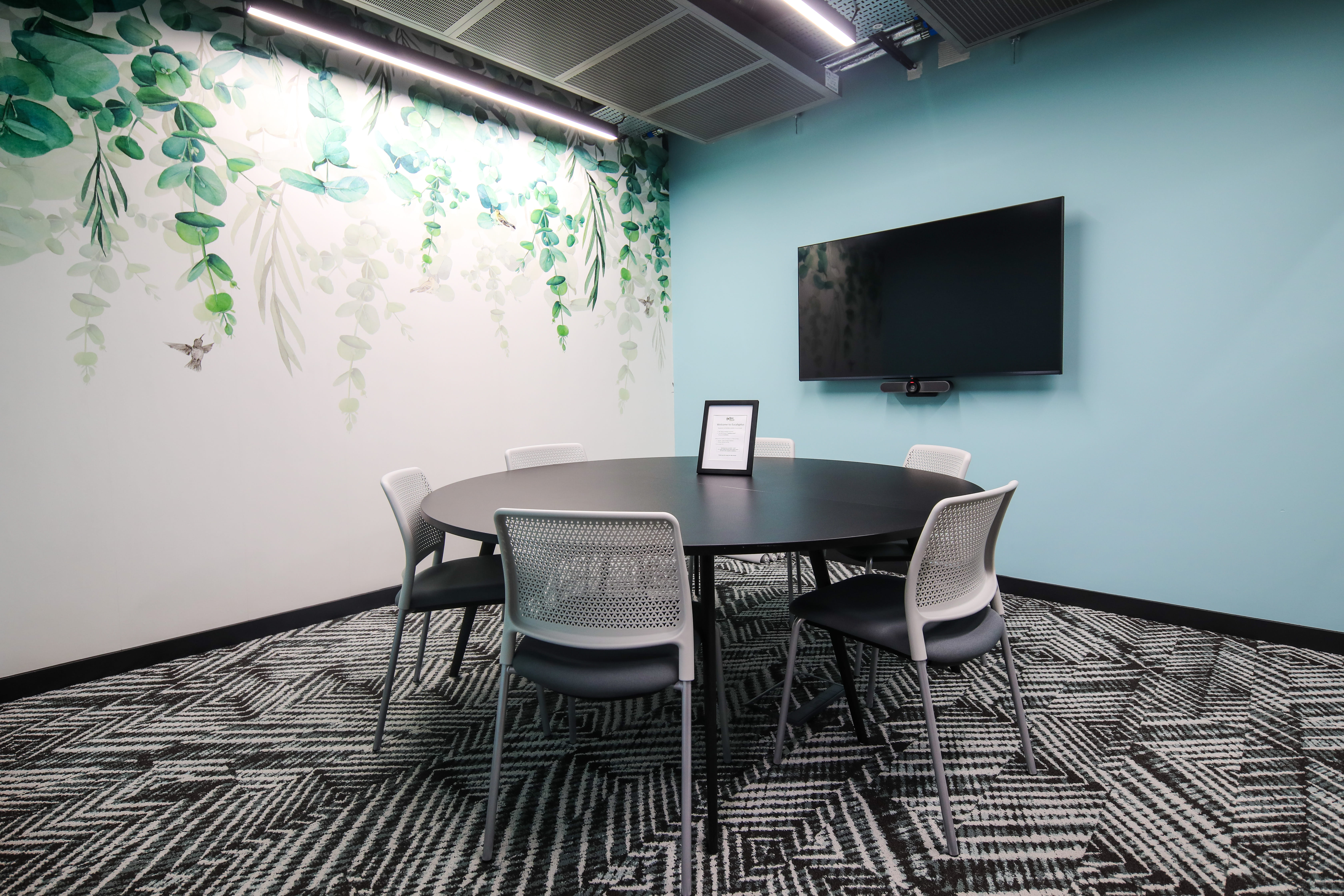 Eucalyptus is a 6-seat meeting room. Facilities include AV equipment, wireless ClickShare connection, Logitech video conferencing system and stationery. Available on request, flipcharts and catering from our on-site service provider.