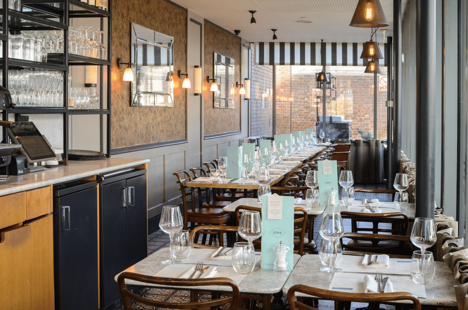 Located at the front of the restaurant, with natural light shinning through the glass windows, with tables arranged in one long row for your dining events. The space is ideal if you wish to host a small dining event but would like an amount of privacy. We can offer a variety of menus here, anything from a la carte to 4-course-set menus, for breakfast, lunch and dinner.