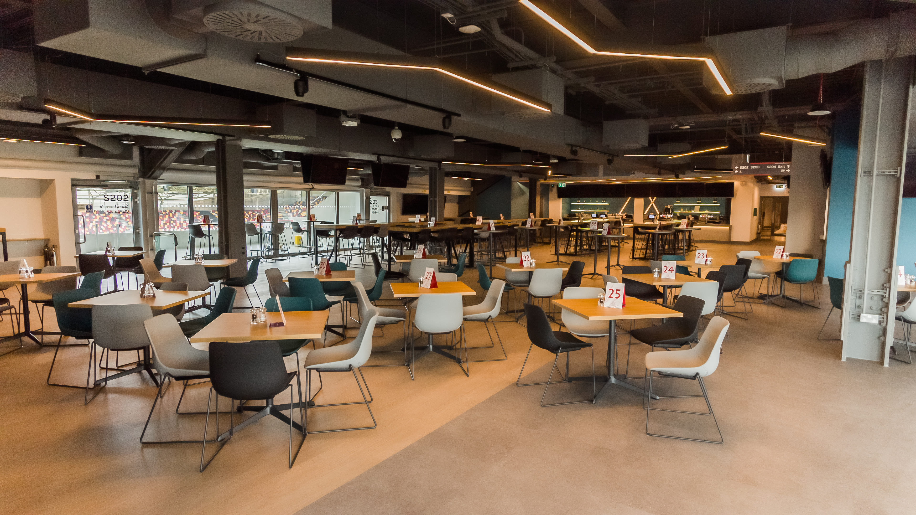 Celebrate greatness in The Legends, one of our light and airy lounges offering stunning views across the pitch. The Legends, designed to honour the passionate players who have represented Brentford FC over the years, combines an electric atmosphere with contemporary facilities for world-class banquets, conferences and meetings. Host an event that keeps every guest and delegate talking in The Legends, one of the most spacious function rooms at Gtech Community Stadium. With the capacity for up to 250 people, access to a private bar and a selection of bar-style and round-table seating, this contemporary lounge offers everything you need to host memorable private and corporate events. Large windows allow natural light to flood into the room, while dramatic views across the pitch provide the perfect conversation starter for every attendee. Whether you’re hosting a banquet of up to 100 guests or a meeting of up to 150 delegates, The Legends promises to bring your event to life.
