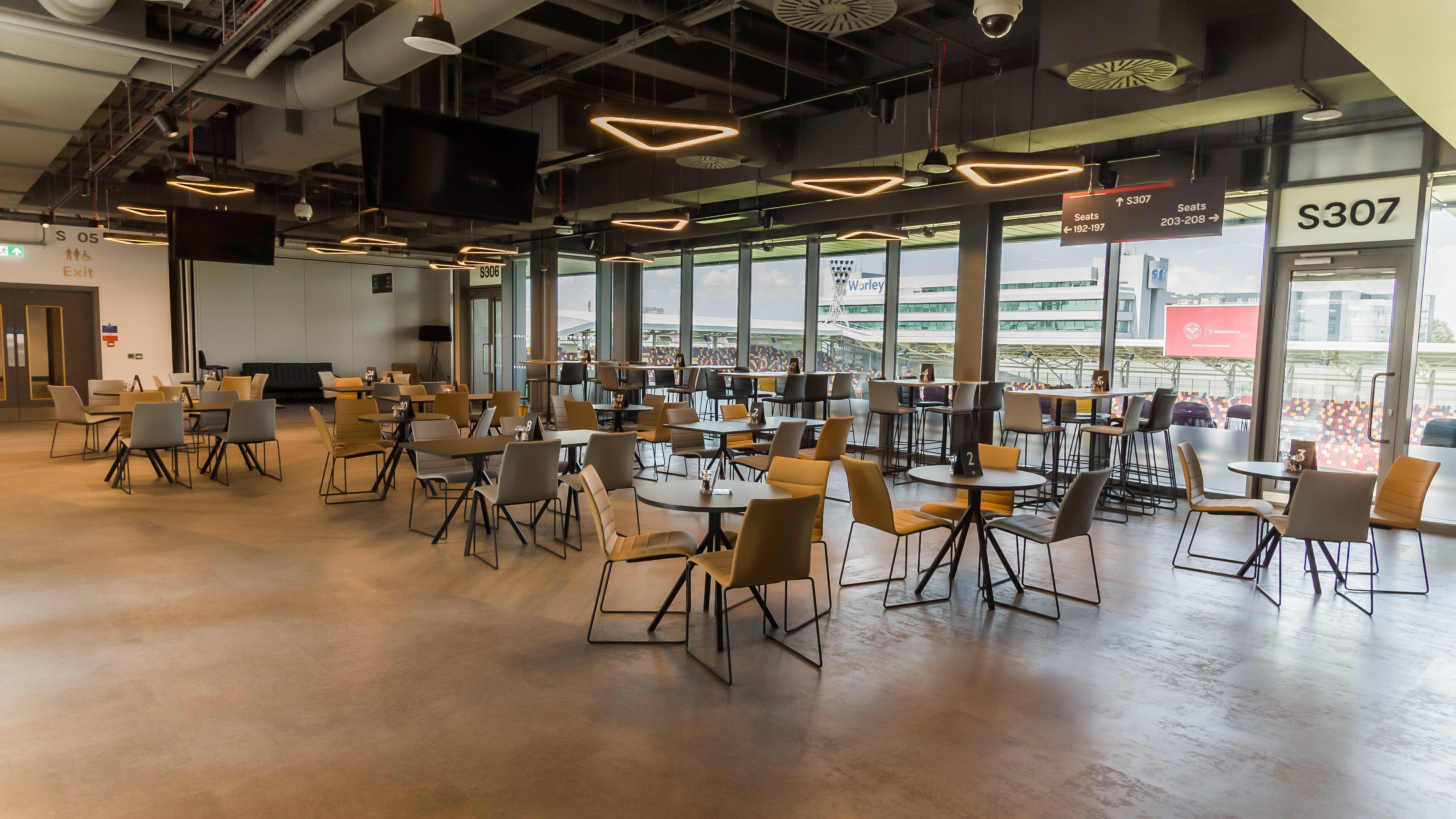 Host an unforgettable event in The Orchard, one of our contemporary lounges overlooking the pitch at Gtech Community Stadium. Named in celebration of Griffin Park, our former stadium built upon an orchard, this lounge is the ideal setting for events of up to 170 people. Whether you’re planning a drinks reception or employee training session, The Orchard promises the atmosphere you need to impress. With the capacity to host up to 113 guests or delegates and floor-to-ceiling windows offering stunning pitch views, The Orchard is an event space to remember. Guests will love gazing out across the pitch during a presentation or networking event, with access to a private bar creating a more exclusive feel. Customisable seating arrangements make The Orchard a highly versatile lounge within the impressive Gtech Community Stadium and a standout choice for both private and corporate events. Whatever you envision for your upcoming function, this naturally lit lounge is sure to bring the wow factor.