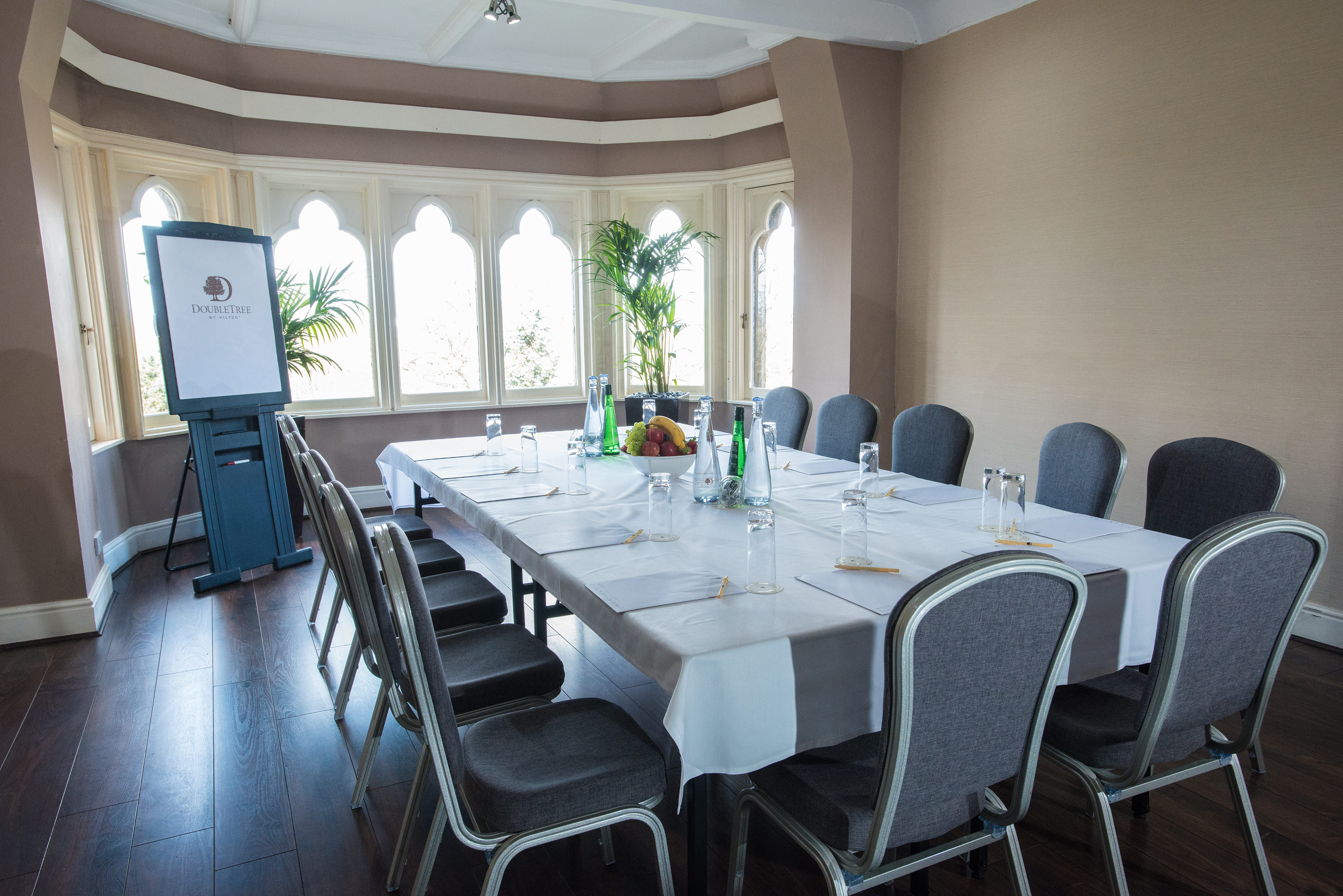 The Turret Room can only be access via the Master Room and features a wooden style floor and a large Gothic bay window looking out to the spectacular views across the North Somerset countryside and over to Wales. The Turret Room has air conditioning, lots of natural light and is perfect as a breakout room when using the Master Room. The Turret Room can hold up to 40 guests in a Theatre Style setup or 20 guests in a Boardroom setup.