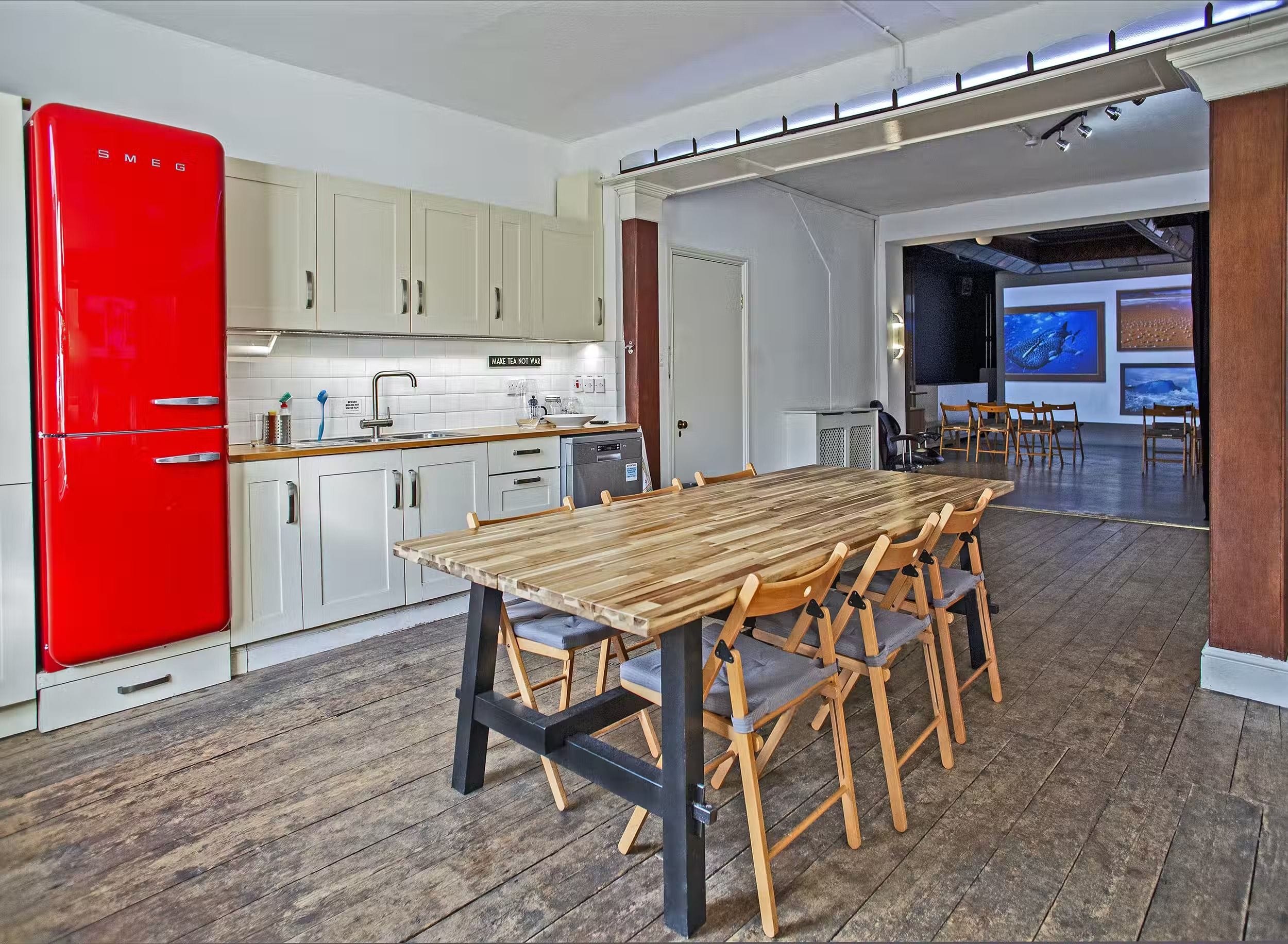 THE FLAT is a creative hub consisting of multiple spaces that make for a headquarters of productivity. Utilise the spaces for shoots, green rooms, script readings, interviews, castings and much more. Perfect for: Workshops // Off-sites // Meetings // Focus Groups // Exclusive Hire // Hide & seek // World domination planning information. Size: 1,000sqft Capacity: 12-25 seated // 30 standing Included Amenities: ☀️ Great natural light // 📺 HD TV // 🪑 Boardroom table that seats 12 // 🖼 Blank canvas room with customisable layout // 📽 Wall projector // ✍️ White board // 🍳 Kitchenette // ☕️ Self serve tea, coffee & sodas // 🚻 2 private toilets // 🎤 Additional equipment available for hire // 🚗 2x parking spaces available upon request Located inside Anomalous Space in Angel, 36 Pentonville Rd, London N1 9HF.