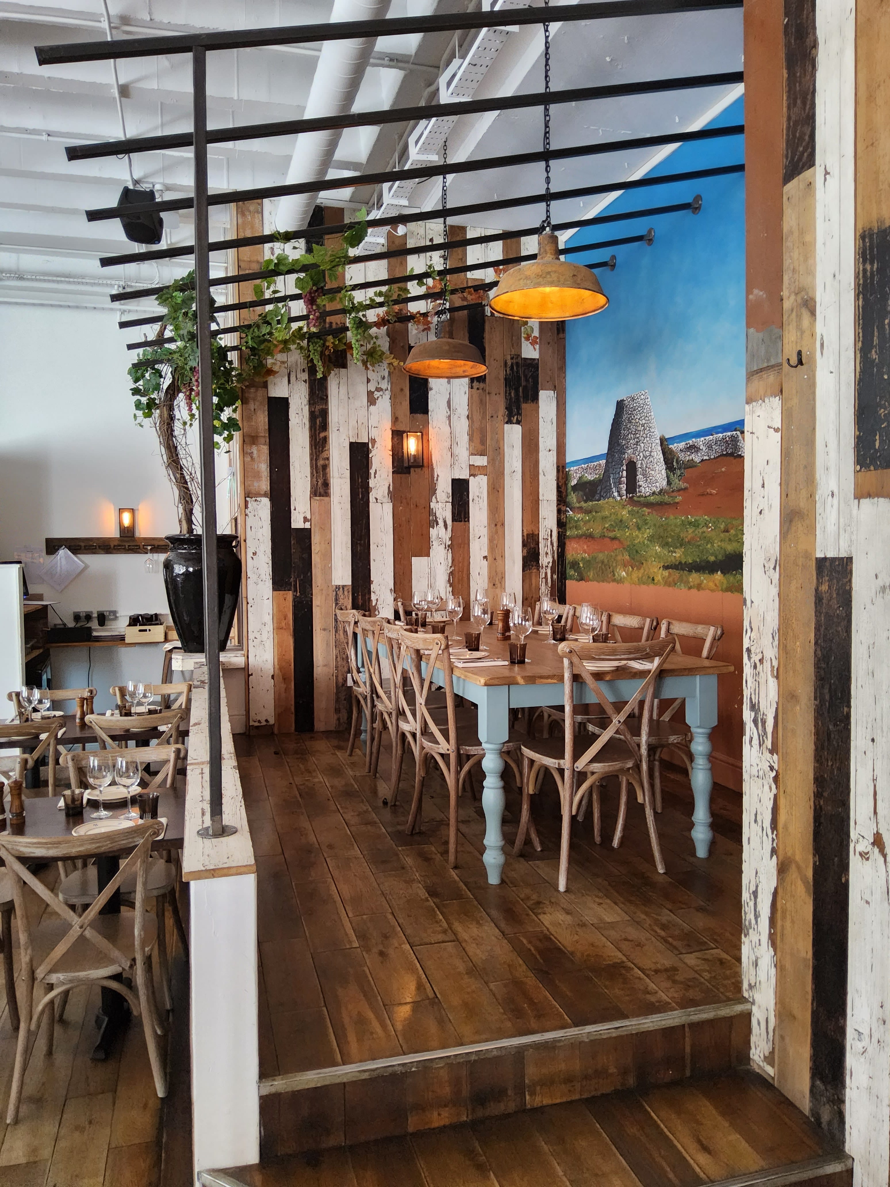Terra Rossa St Paul is a new cosy Italian restaurant serving traditional Apulian food in the heart of the City, on Carter Lane. Our raised private area at the back of the restaurant featuring a hand painted typical Salento landscape on the wall as well as soft lights and plants is the perfect corner for a private party. It can accommodate 10 people seating, and will offer more privacy whilst still enjoying the traditional handmade Apulian doilies and terracotta plates and the overall southern Italy atmosphere of our venue. Great connection to transport links, only a 10 minutes’ walk or less from Black Friars (0.1 miles), City Thameslink (0.1 miles), St Paul (0.3 miles), Cannon Steet, and Bank Station (0.6 miles).