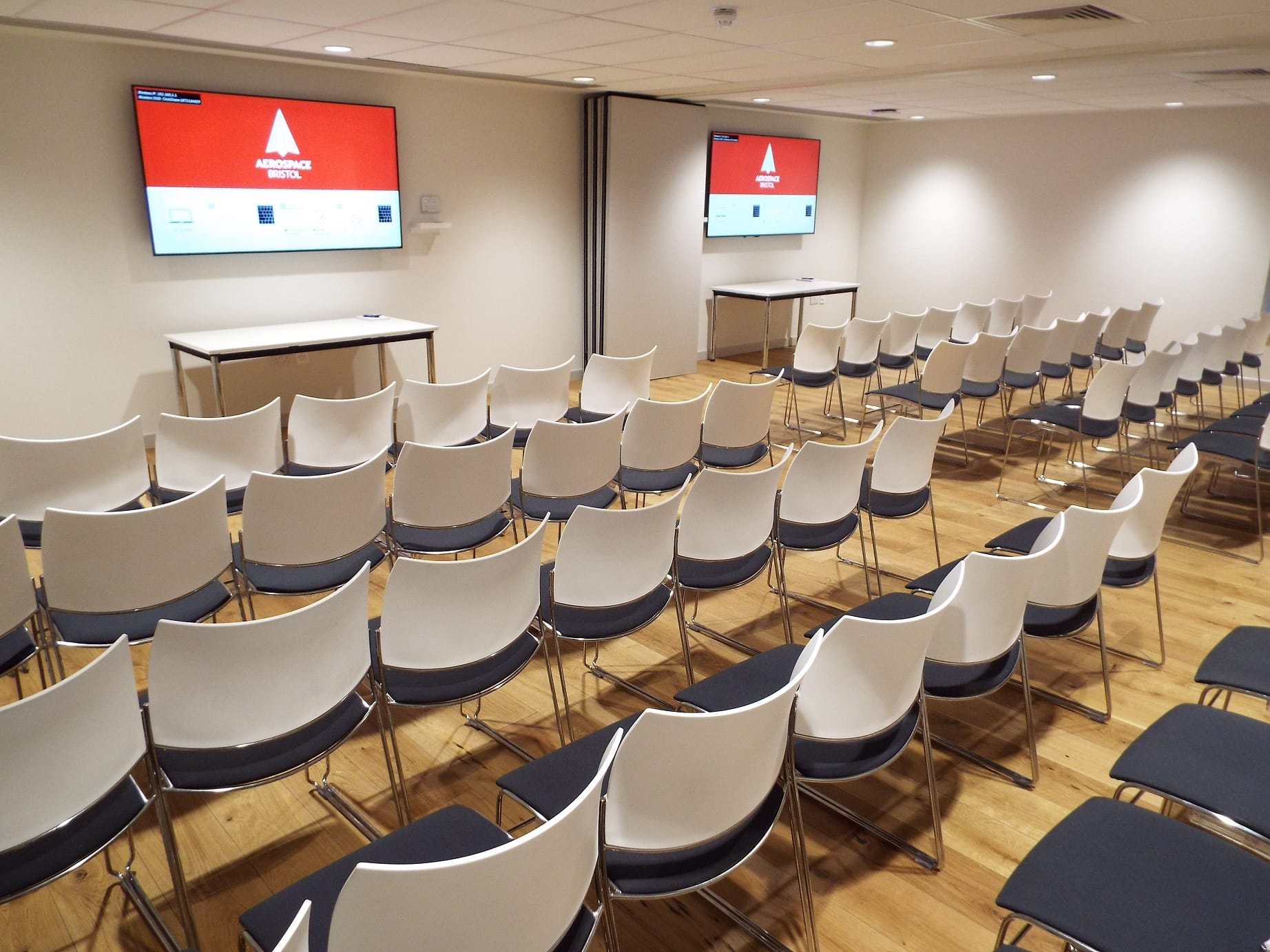 For larger events, the Miami and Washington rooms can combine to accommodate up to 70 guests. This room includes 2 large plasma screens.