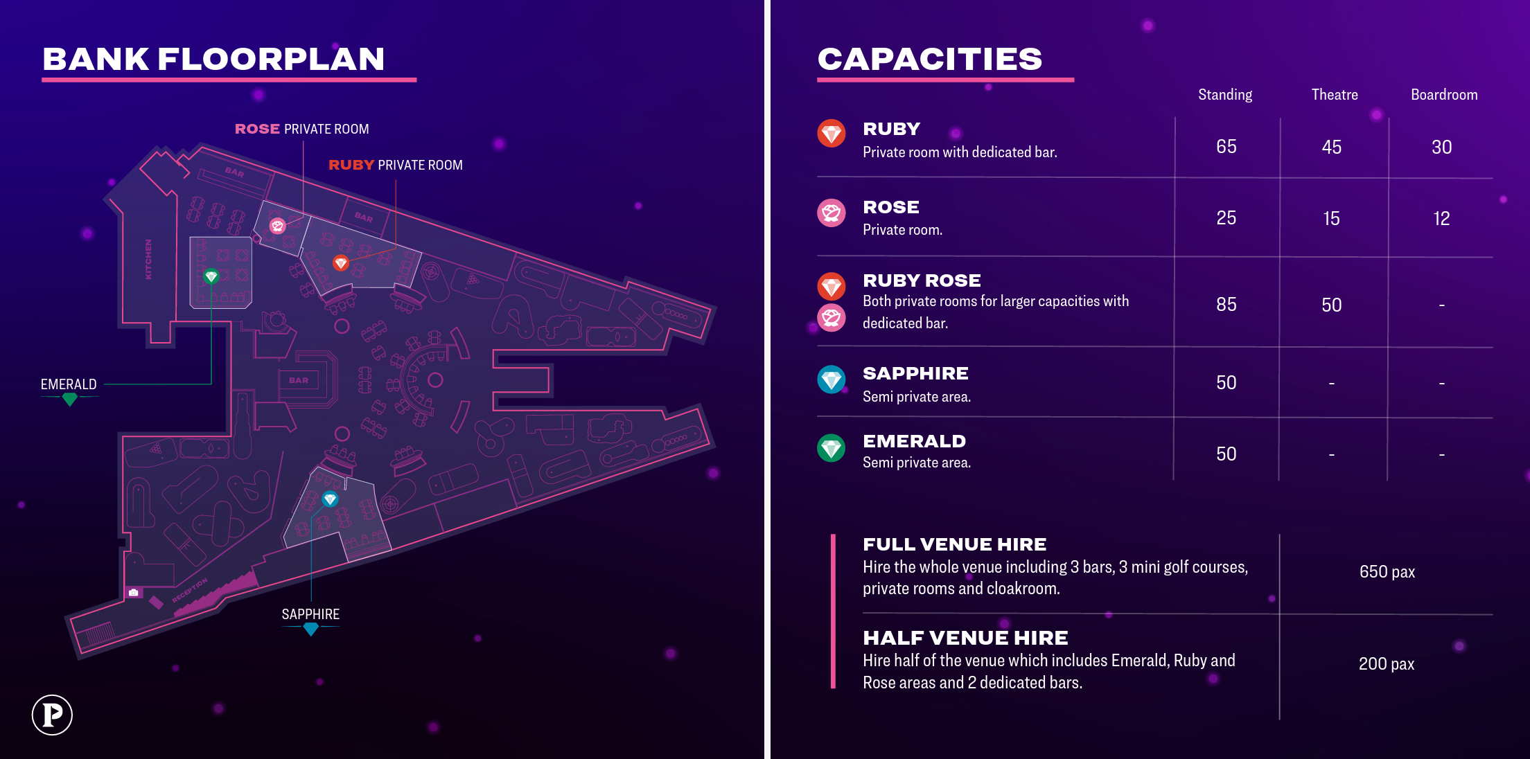 Our Rose private room is the most intimate space at Puttshack Bank, and is ideal for small meetings, training sessions and presentations. This upscale and cosy space is fully AV equipped and easily adaptable to both theatre and boardroom layout. Choose from our morning, afternoon, and full day DDR packages to enjoy delicious globally inspired food and keep topped up throughout your event with all the refreshments you need to make your meeting memorable. Once the business part of the day is over, let the competition begin on one of our high-tech golf courses!