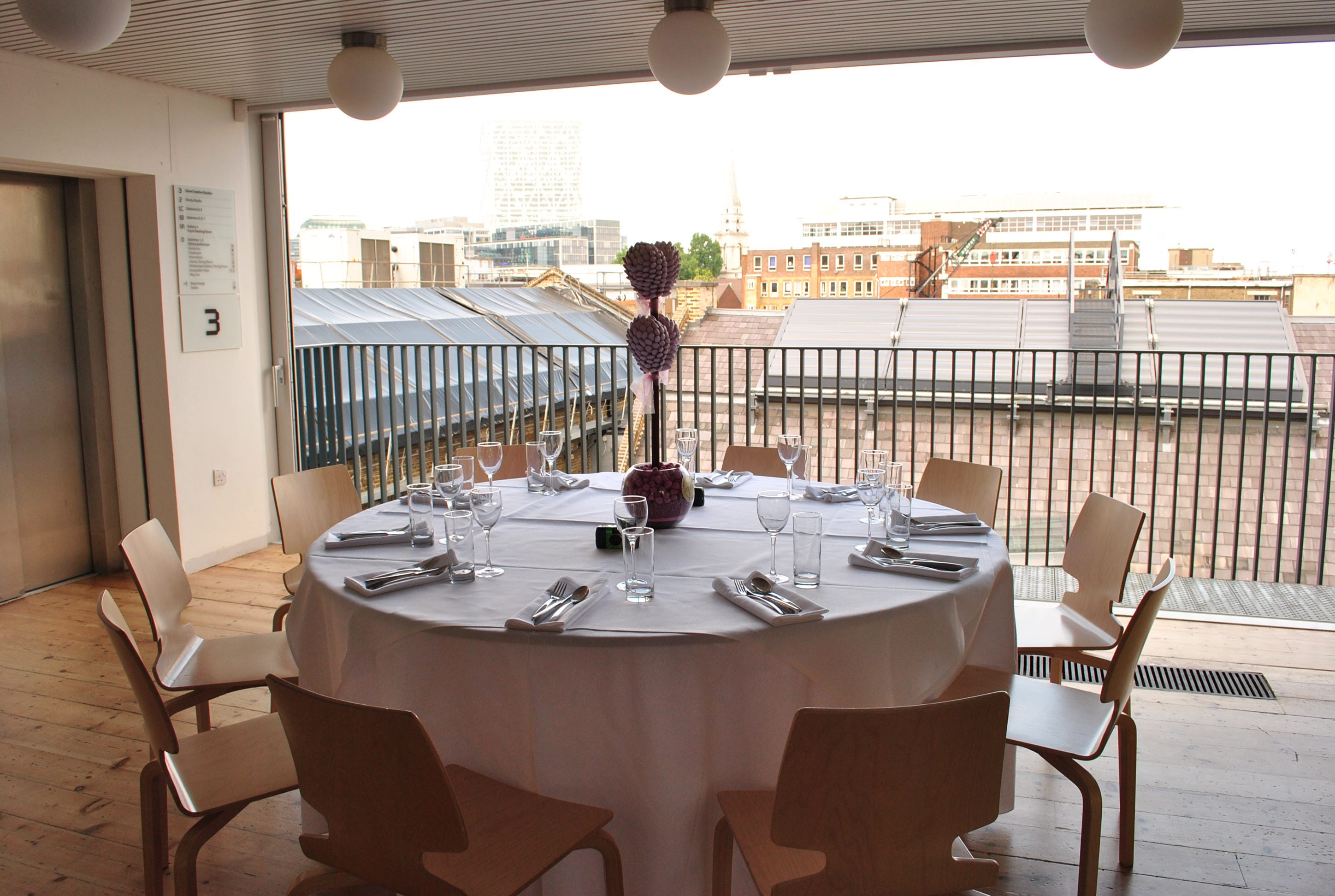 **Hire Clore Creative Studio at Whitechapel Gallery, a modern space with the ability to accommodate a wide range of events.** The Clore Creative Studio is a fresh and inspiring space with floor to ceiling windows. With the city skyline backdrop, this space can provide the perfect setting for intimate atmospheric evening events such as drinks receptions and dinners. The Clore Creative Studio is also available for day hire and can be broken down into three spaces by sliding walls - ideal for break-out sessions or team working. This penthouse studio opens up to a private Juliet balcony, allowing you to take in the stunning view while leaving the hustle and bustle of the city below. Clore Creative Studio is a dry hire but there are catering option available in the space.