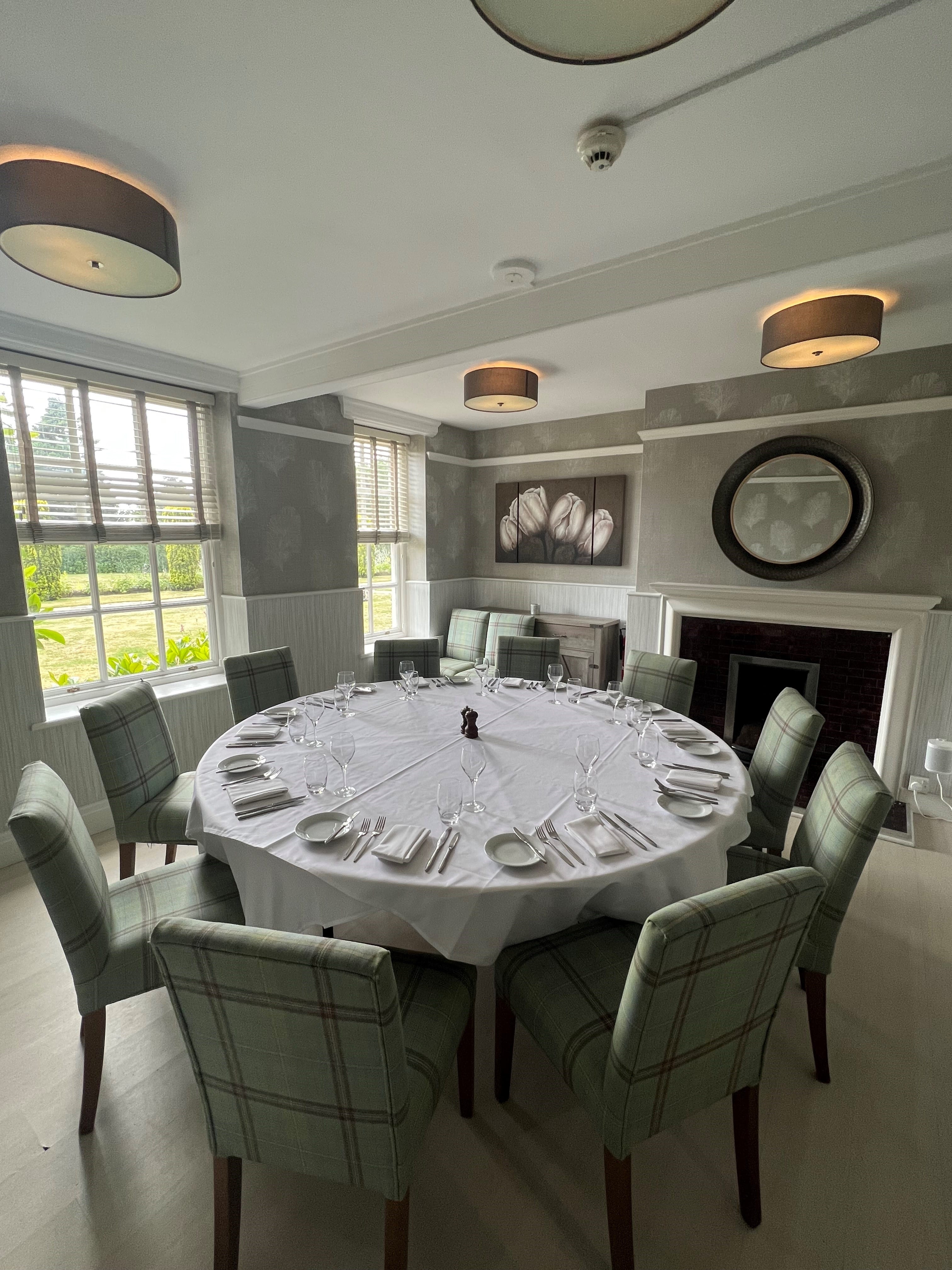 Newly decorated, The Feathers, named so for the pretty patterns adorning the space, is a charming and bright room for up to 10 guests seated at a round table.
