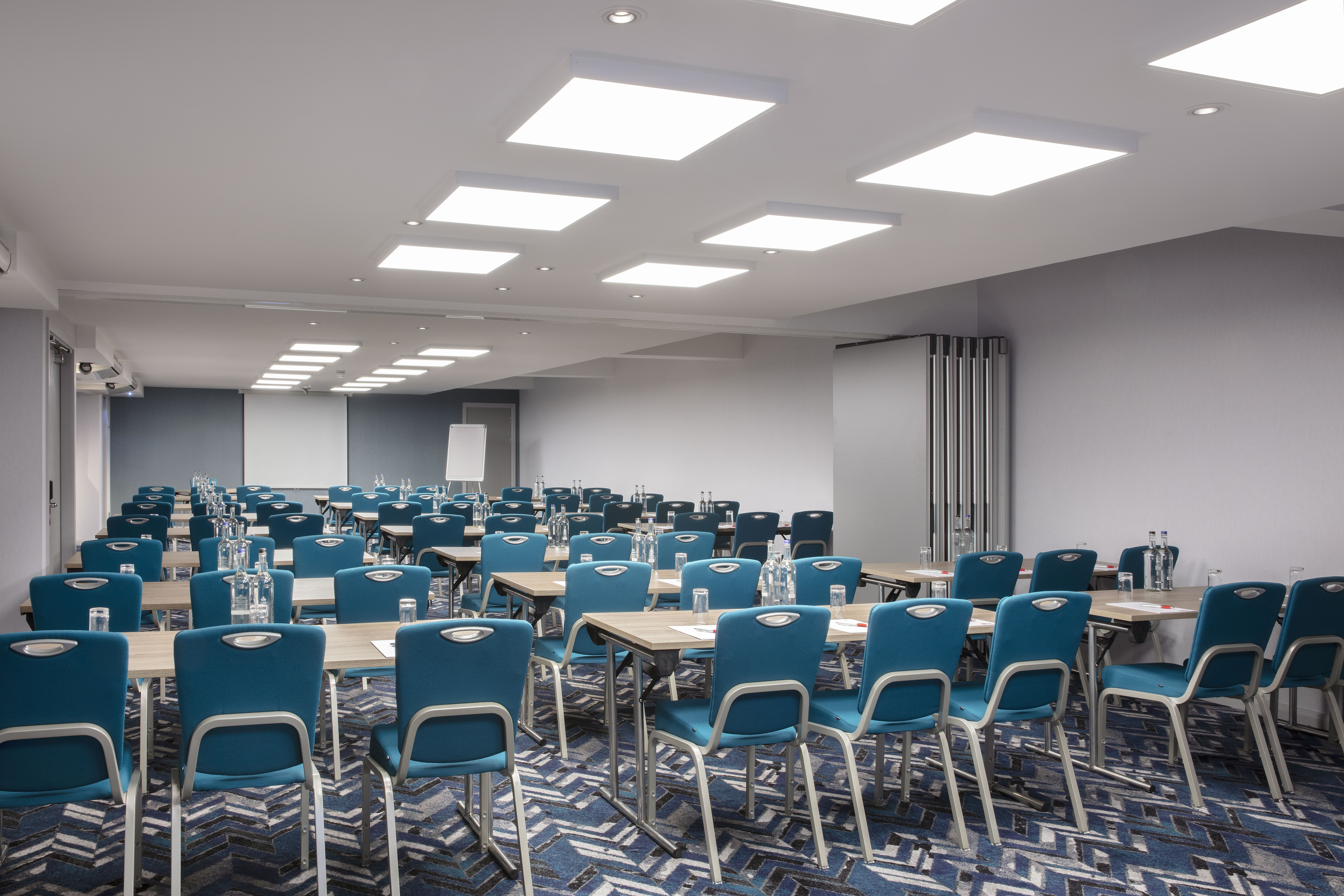 Combined, this suite can accommodate 130 guests theatre style, however, the room can be divided in half to create 2 smaller Spaces. Discover 15 air-conditioned meeting room facilities at our London Heathrow Hotel offering a range of Spaces from 2 to 130 delegates. As an added feature, we’ll make sure an experienced team member is always on hand to help coordinate and set up the room to suit your exact needs. Business guests at the Leonardo Hotel London Heathrow also benefit from complimentary, high-speed Wi-Fi and LCD projectors for presentations. You’ll additionally find our stylish onsite Kitchen Bar and Restaurant that’s perfect for entertaining guests before or after a meeting or event. Located on the Bath Road, less than a 5-minute drive to London Heathrow Airport (LHR) Terminals, the hotel offers an excellent option and is ideally placed for hosting any meetings, board meetings, training sessions or corporate events. Easy access for flight connections and tube or train into Central London via the Piccadilly Line or the Heathrow Express.