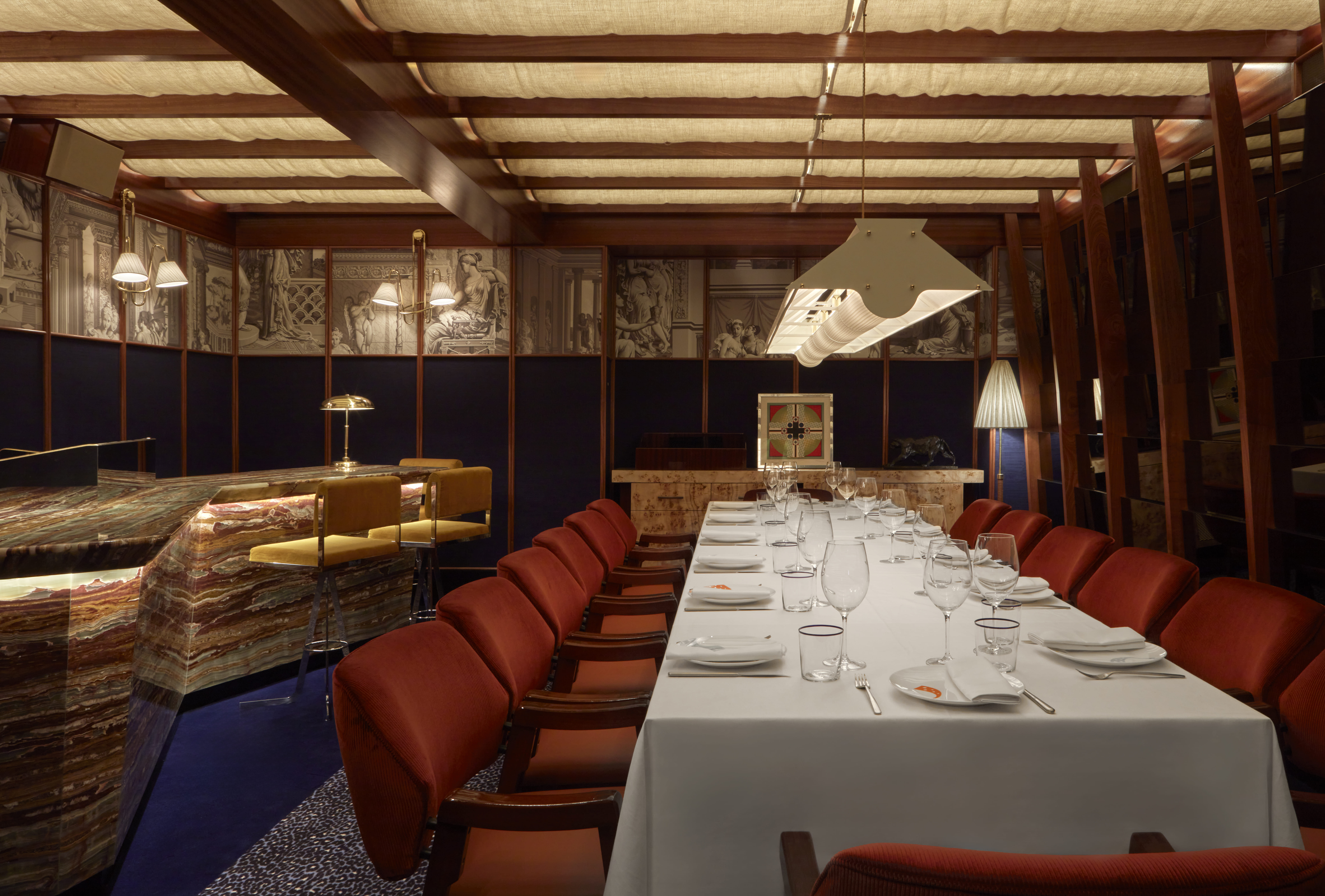 Sofia is a unique space by renowned interior designers, Dion et Arles, and inspired by the ultimate icon of Italian glamour, Sofia Loren. Striking a balance between heritage and modernity, a tasteful blend of dark wood, azure blue and amber pantones are offset with bold prints. The marble-topped bar takes pride of place, ideal for cocktail receptions or post-dinner drinks. A classic sepia fresco adorns the walls creating a subtle yet impressive atmosphere that suits both lunch and dinner occasions. Located on the lower ground floor guests will feel complete privacy throughout their event. Sofia can accommodate groups of up to 14 guests seated on one long table. Experience the same exceptional service and hospitality in an exclusive setting that is guaranteed to impress.