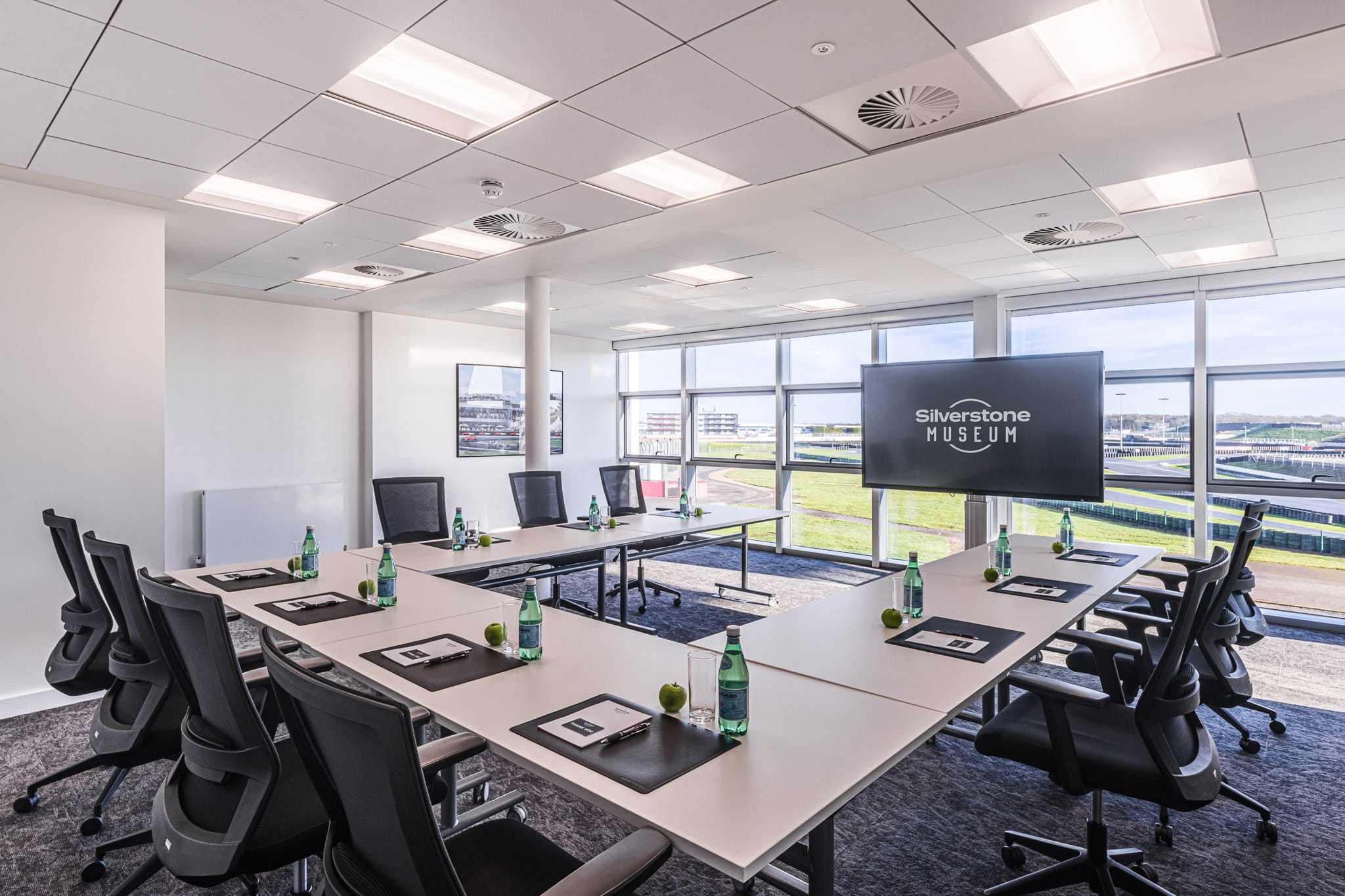 Located adjacent to our primary studios, the Brooklands Studio is a multi-purpose space that offers uninterrupted views of the circuit's most famous curves. This room is the ideal solution for smaller team huddles, intimate drinks receptions, or as a breakout area for larger events taking place in the Bridge Studios. Combining sleek aesthetics with the museum’s signature trackside views, Brooklands provides a more personal setting without compromising on the prestige of the Silverstone location. Whether used for a boardroom, private celebratory lunch or as a dedicated catering hub, the space is as functional as it is inspiring.