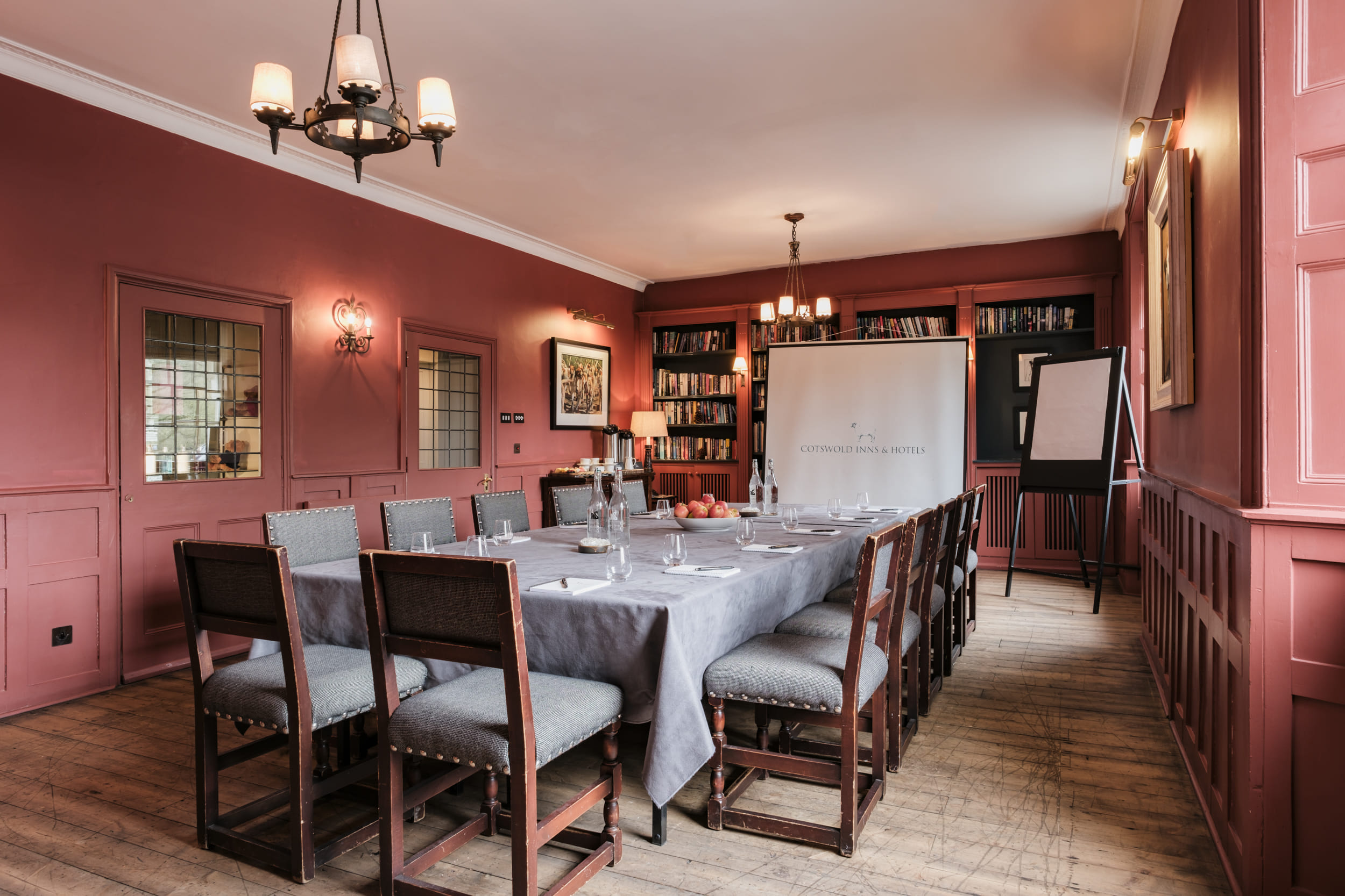A Meeting Room in a traditional Library setting with roaring fireplace.