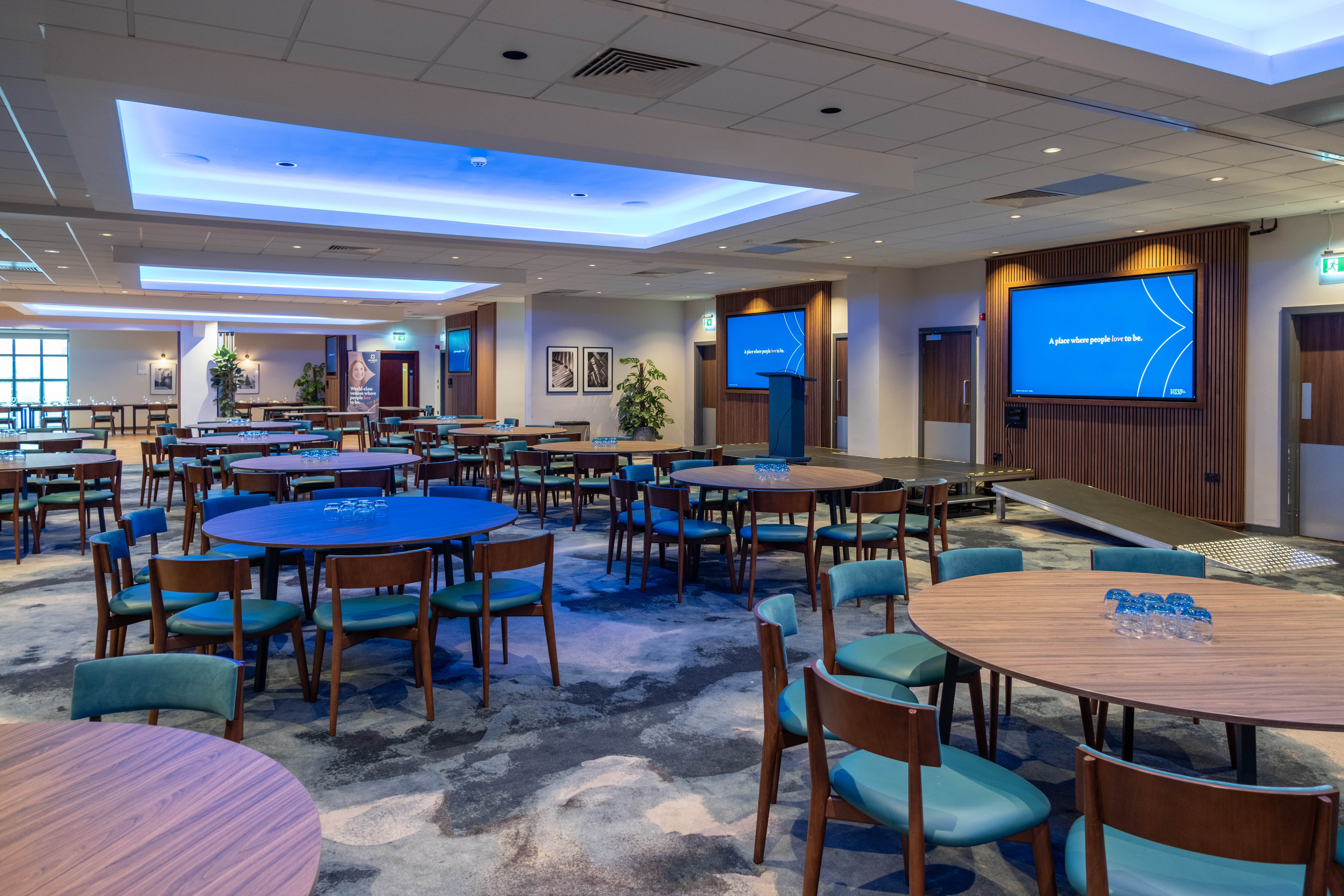Formerly the venue’s restaurant, this space has been fully transformed into a brand-new, purpose-built cabaret-style conference room with a capacity of up to 200 delegates. Designed for maximum flexibility, it is ideal for large plenary sessions, conferences, or gala dinners. Multiple screens positioned throughout the room ensure every guest remains engaged and connected, while integrated live capture streaming adds a dynamic, professional edge to any event. As a suite, the space can be configured to suit a wide range of layouts and styles. Sections 3 and 4 feature hard flooring, making them ideal for use as a dedicated dance floor, adding an extra dimension for gala dinners, award evenings, or social events. With seamless integration between all four sections, the space combines modern facilities with adaptable design to create a standout setting for any occasion.