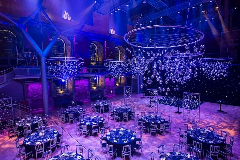 **Host your next exclusive Christmas party at LSO St Luke's as one of the best party venues London has to offer for your festive shindig!** Nestling on the edges of the City and Shoreditch is the stunning LSO St Luke’s, home to the London Symphony Orchestra’s pioneering music education programme. Set back from the bustling street, this historic building’s imposing white walls conceal London's most elegant Christmas parties. On arrival, guests will approach a magnificent entrance beneath the impressively-lit Hawksmoor spire then continue into the beautiful Jerwood Hall, in which the commanding architecture will be enhanced with careful, sensitive lighting. Relaxing music will filter around the room and – most importantly – guests will be greeted by friendly waiting staff offering a perfectly chilled drink to start the night. As the reception draws to a close, it’s time to dine – either a tempting selection of signature canapés and bowl food, a more formal seated dinner with beautiful linens and creative table centres, or relaxed food stations for guests to enjoy whilst mingling. And when evening guests finish eating they’re invited to party as the DJ picks up the tempo.