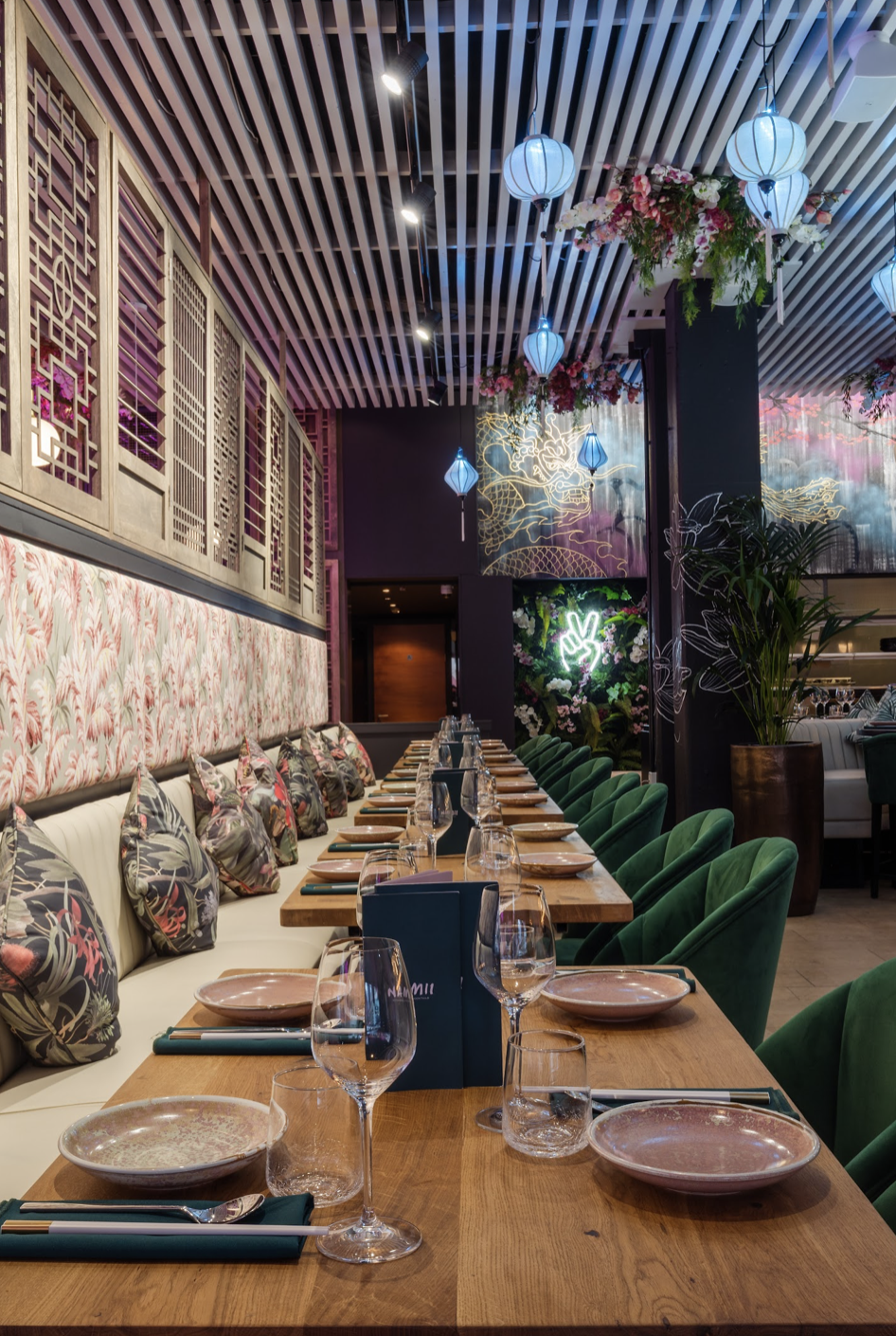 The main restaurant dining area, designed to accommodate 20-30 guests which Is across several tables, offers an elegant and intimate setting curated to deliver a unique and memorable dining experience. The space is adorned with a subtle glow and captivating floral arrangements, creating a romantic atmosphere ideal for special occasions or any event where you wish to elevate your dining experience. While this space is not a private dining room, the tables will be reserved for your party meaning it will not be available for booking by other parties during your reservation.