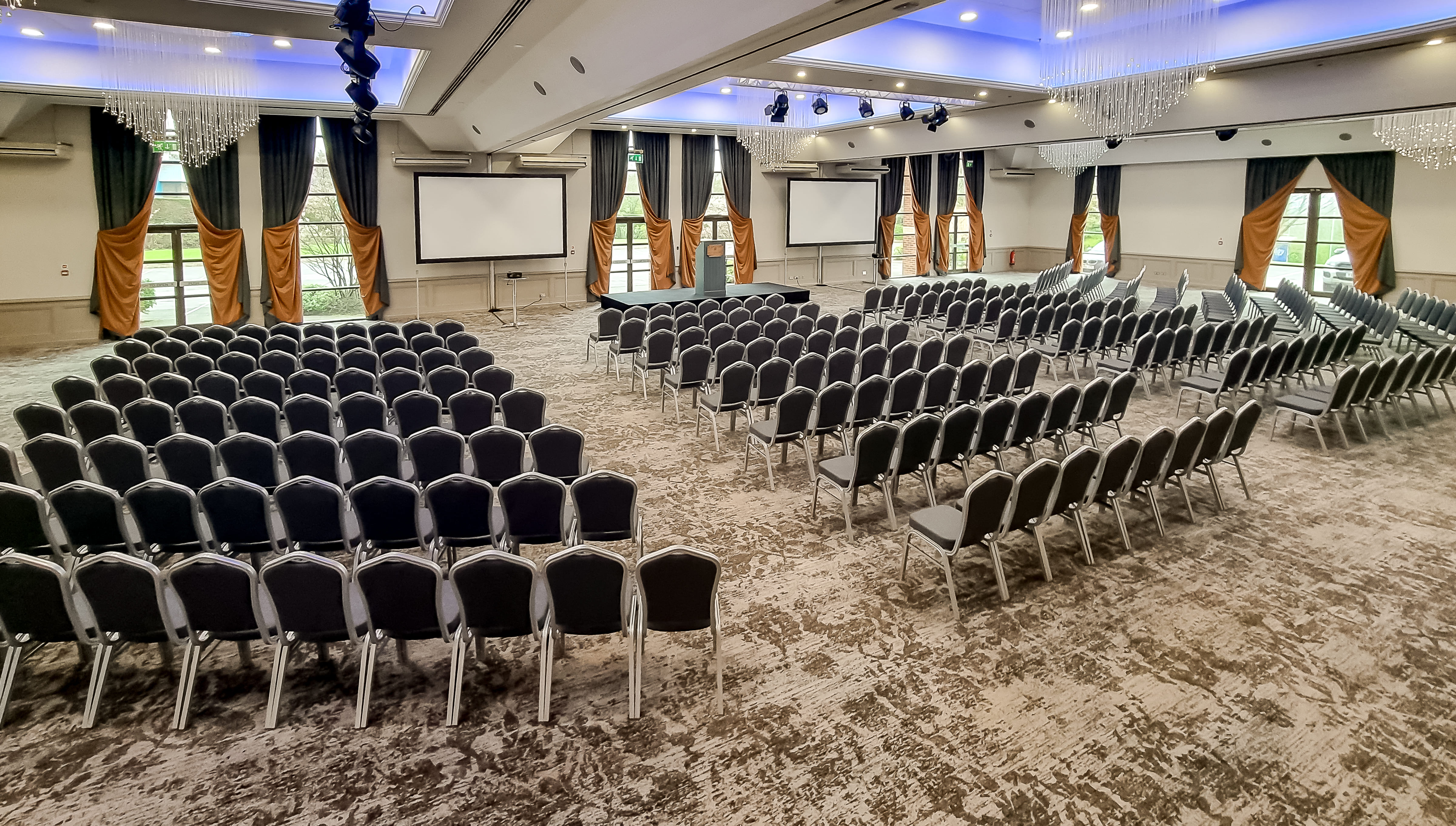 The Cedar room is a spacious, elegant space designed to accommodate large conference and events with ease, located on the ground floor at the hotel. The room features from high ceilings with modern, adjustable lighting that can create the perfect ambiance for any occasion. With air conditioning and plenty of natural daylight. Adjacent to the Cedar room is a foyer area, making it an ideal space for welcome drinks, buffet stations, or exhibition tables. The foyer area also has a private bar. The conference room can be divided into three equal sections, providing ample space for breakout sessions and other activities.