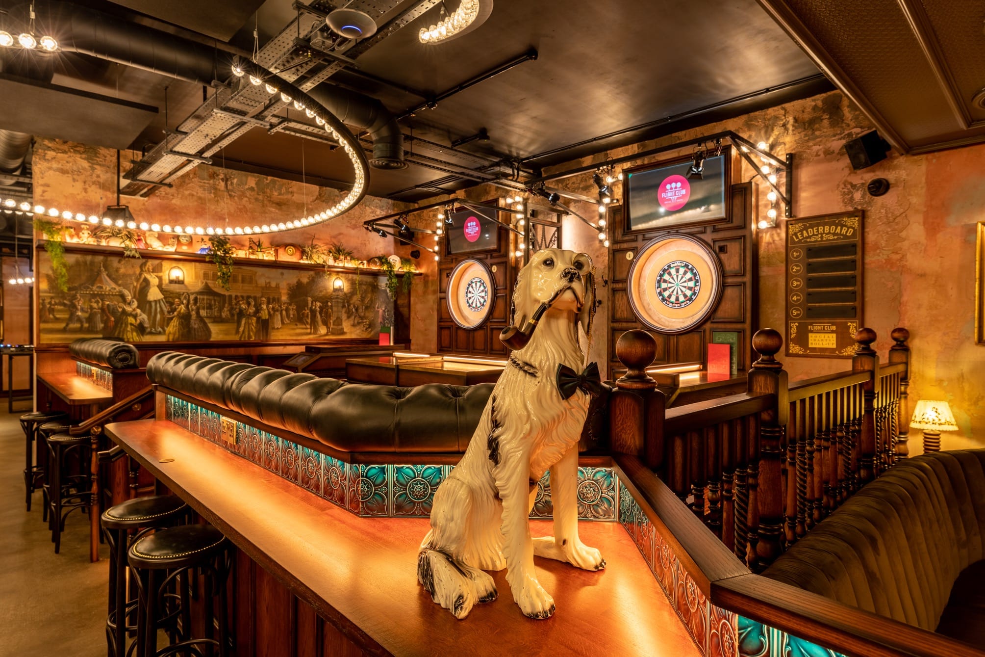 Welcome to Flight Club, the home of Social Darts, where we've reinvented the traditional game of darts for the 21st century with six fast-paced games that'll get your competitive side flowing. Located within Cheltenham’s Brewery Quarter. The décor is beautifully designed with lights that dance in time to the music, Ivy the fairground horse (we are in Cheltenham, after all!) and a stunning mural paying homage to Gloucestershire. The Al Boum is a beautiful double Oche space suitable for up to 48 guests. This includes two Oches with added bar table space. Our Event bookings run from 3-6 hours and come with an Event Host to oversee your event. They also come with a dedicated Gamesmaster to run a tournament for you and your guests.