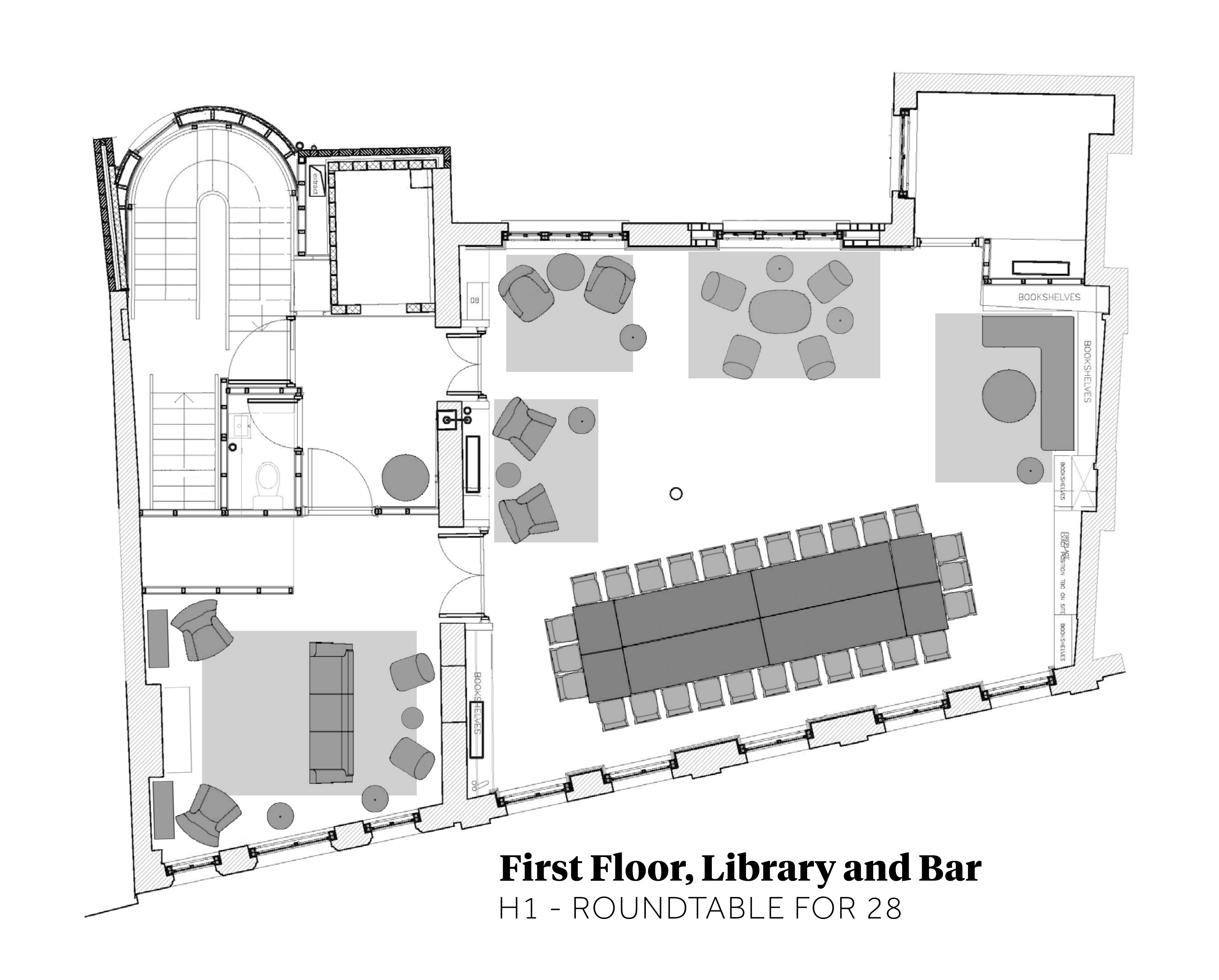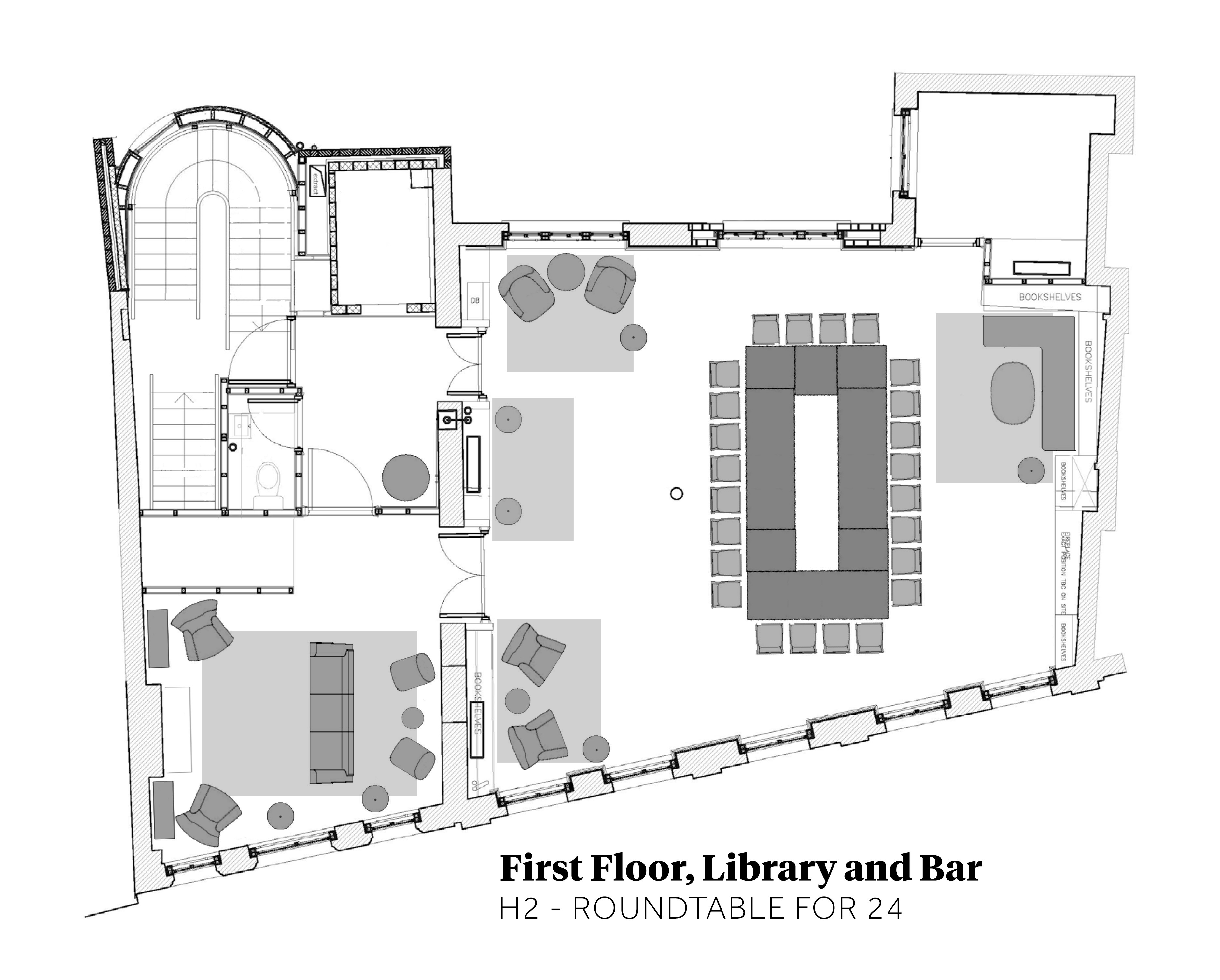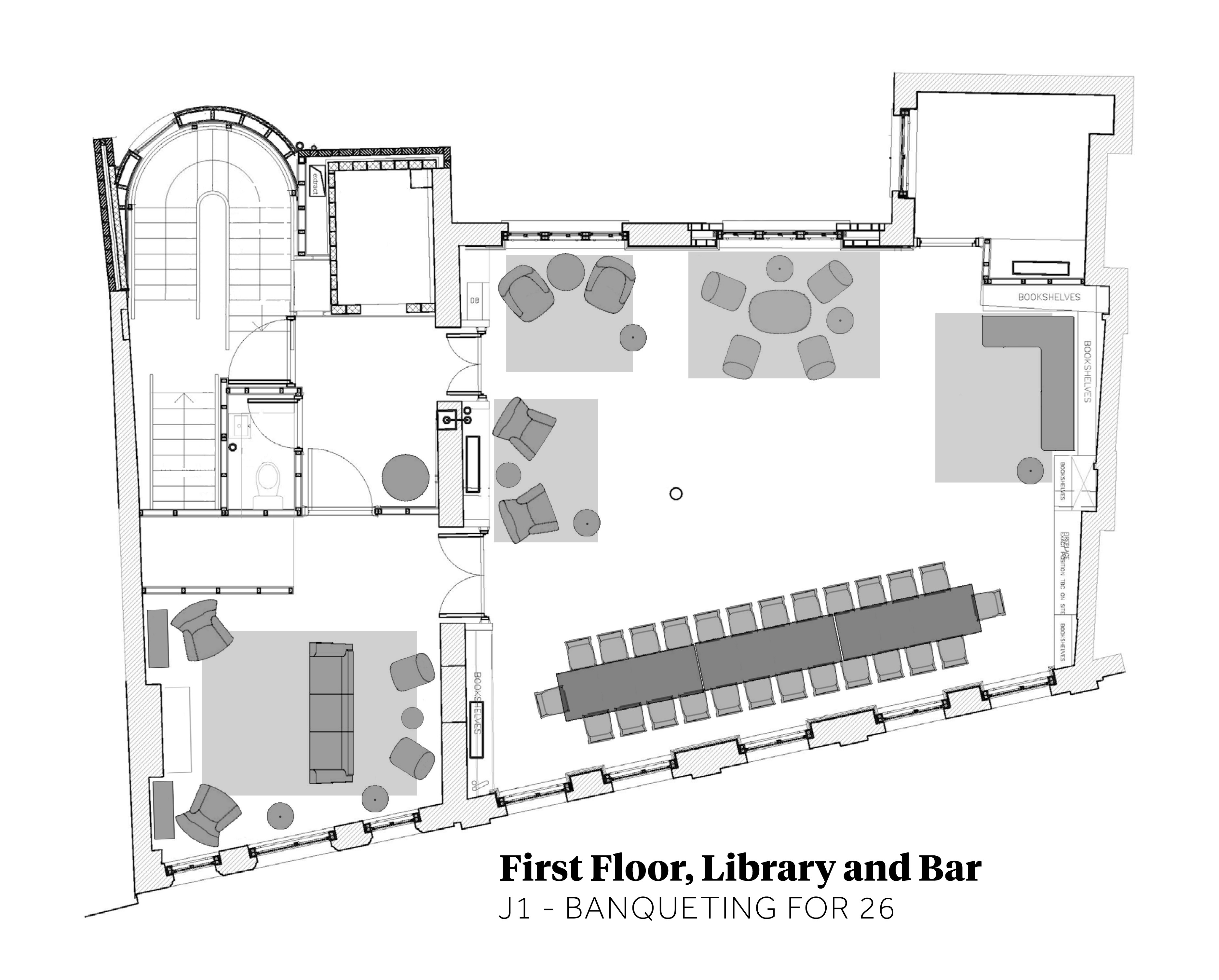 The Library is our largest private event room. It can accommodate 52 guests for a seated meal, and up to 100 guests for a standing event. We also offer theatre set-up for up to 70 guests (with room for up to 20 standing). Or, alternatively, a cabaret set-up for up to 36 guests. Located on the first floor of Old Queen Street Cafe, the location is a true hidden gem between Westminster Abbey and St James' Park.