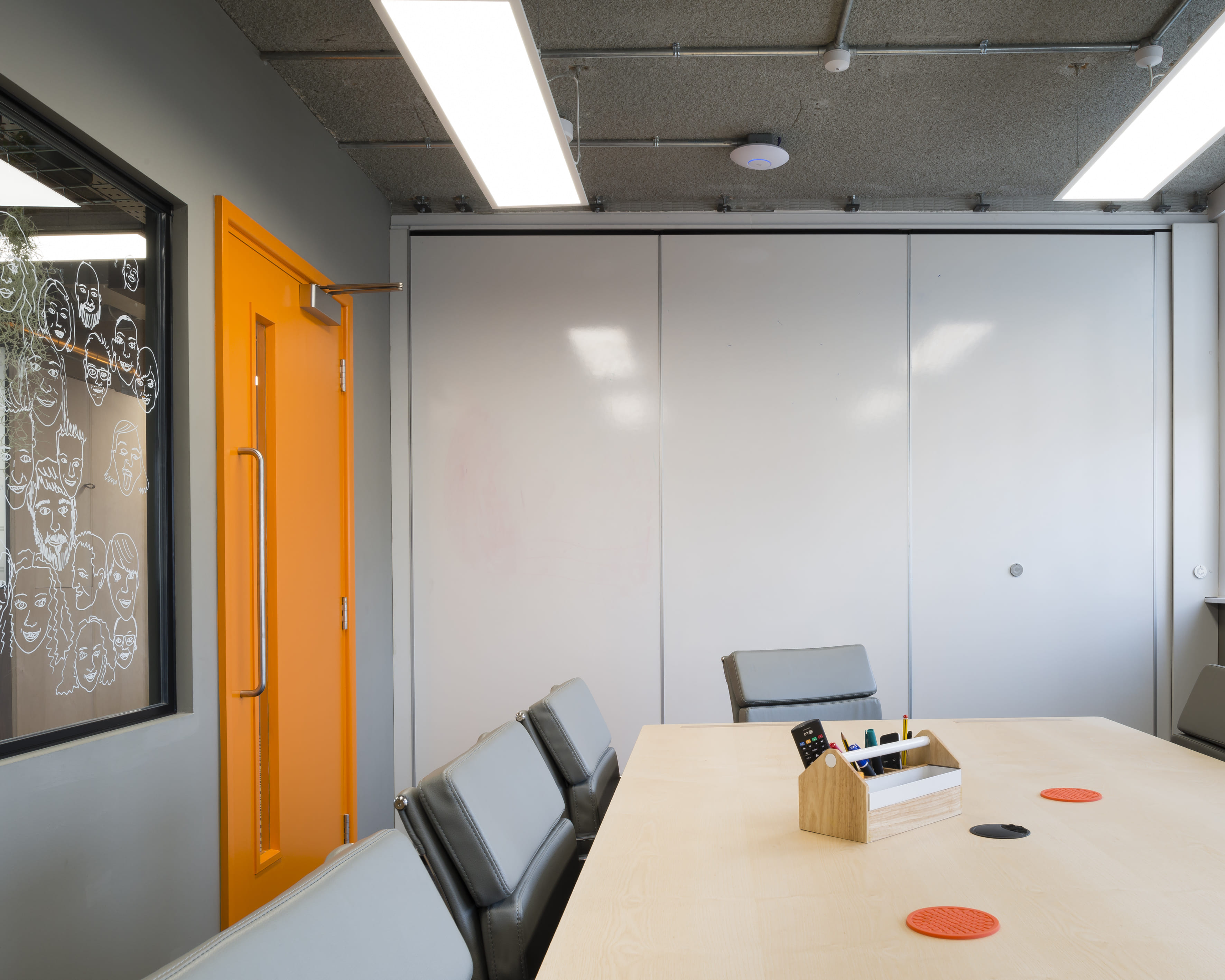 Find your ideal private meeting room or conference venue in one of our smart, kitted-out spaces for get-togethers for two to twenty people. We have meeting rooms available in both our Brighton and Hove locations, complete with everything you might need for a team away day, strategy sessions or intimate event. Yellow is a quiet, internal space for smaller meets but is still packed with our standard hi-spec kit of AV essentials. 56” Ultra High Definition TV Accessible Apple TV and HDMI connection Bespoke furniture Full Catering (Extra) Super-fast WIFI Tea & Coffee (Extra) Whiteboard wall