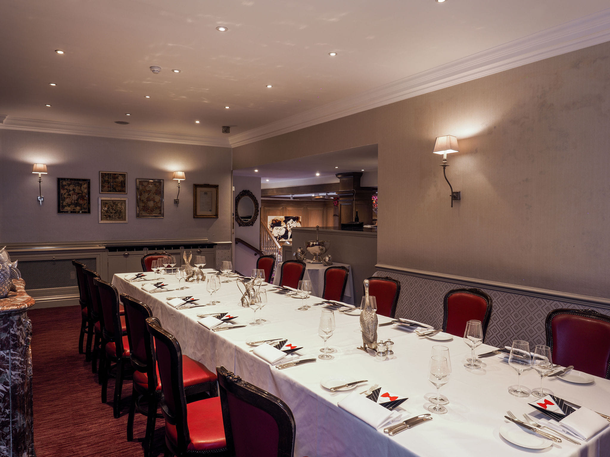 Mosimann’s has the honour of partnering the fine Champagne house of Lanson with the new Lanson Library, a fresh, elegant and contemporary space. A trompe loeil ebonised bookcase painted to depict Champagne bottles, decanters and glasses draws the eye, perfectly foiled by a series of heritage prints sourced from the Lanson archives in Reims, sensitively framed to add the finishing touch.