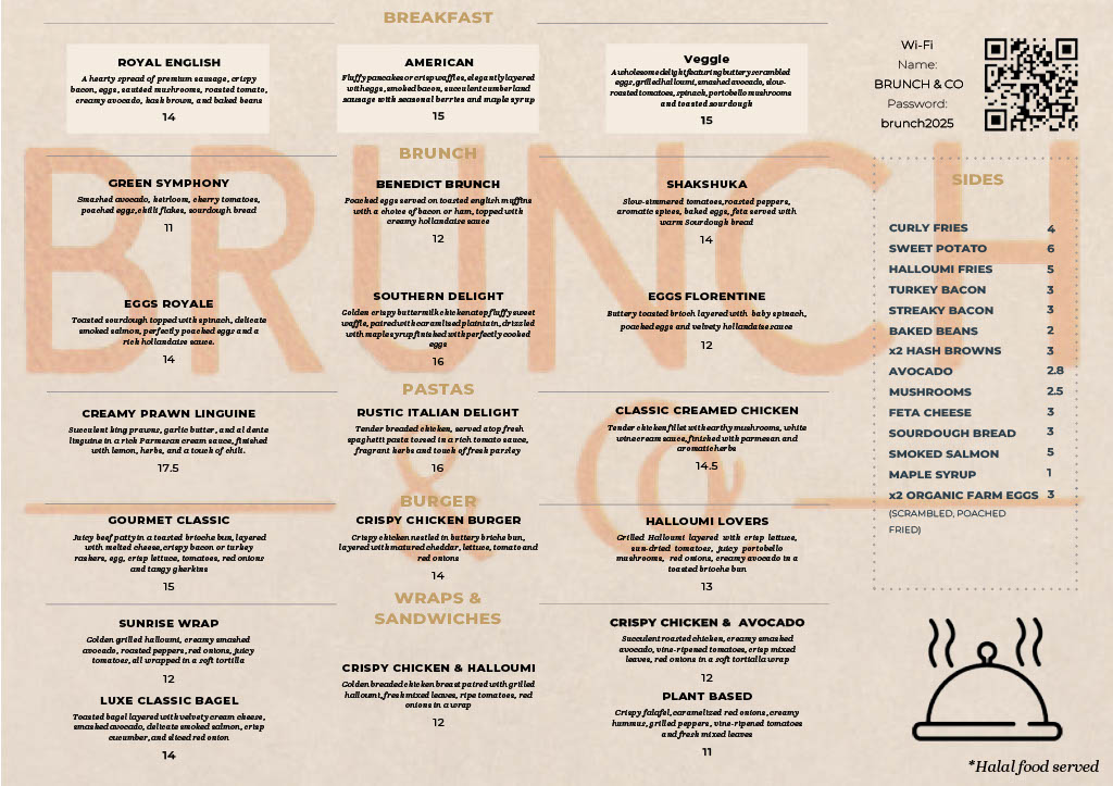 Brunch & Co offers a space for everyone. Start your day with a coffee or a cocktail on the charming outdoor terrace, seating up to 20 guests. Inside, the ground floor provides seating for 40 diners, effortlessly transforming into a lively hub for 60 standing guests during events. For something more exclusive, head to the lower-ground lounge, a hidden treasure accommodating 50 seated or standing guests. With plush seating, its own bar, and a warm, intimate ambiance, the lounge comes alive with live music and entertainment all week long, making it a perfect spot to unwind or celebrate.