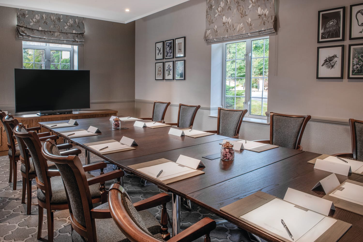 The Hastings is a meeting room located in the White House with a fixed boardroom and triple aspect windows to allow natural daylight. There is a maximum capacity of 14 in boardroom style with dimensions of 5.97 x 3.99 x 3.00. This room is allocated to the White House Coffee Lounge for the arrival, morning and afternoon refreshment breaks.