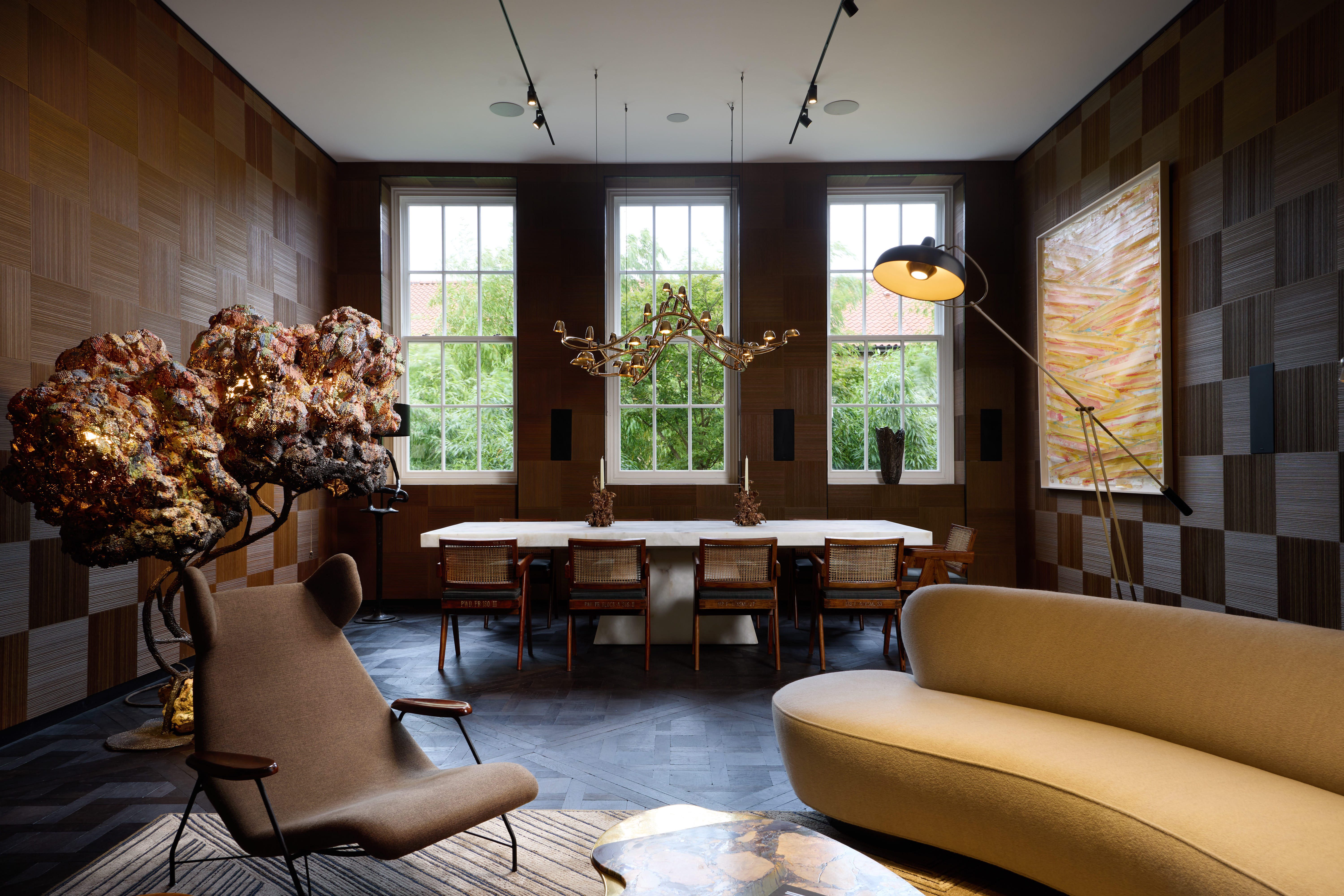Designed by artist Ingrid Donat, with sculpted wood and bronze panelling, the Library is perfectly suited to exclusive private dinners and meetings within an intimate setting. Key Features: Overall size: 55.7 m2 / 600 sqft . Height: 4.1 m . Seated capacity: 14 . Dolby Atmos 18 Focal speakers & Denon amp . High speed WiFi 400 mbp xxxxxxxxxxxxxxxxx