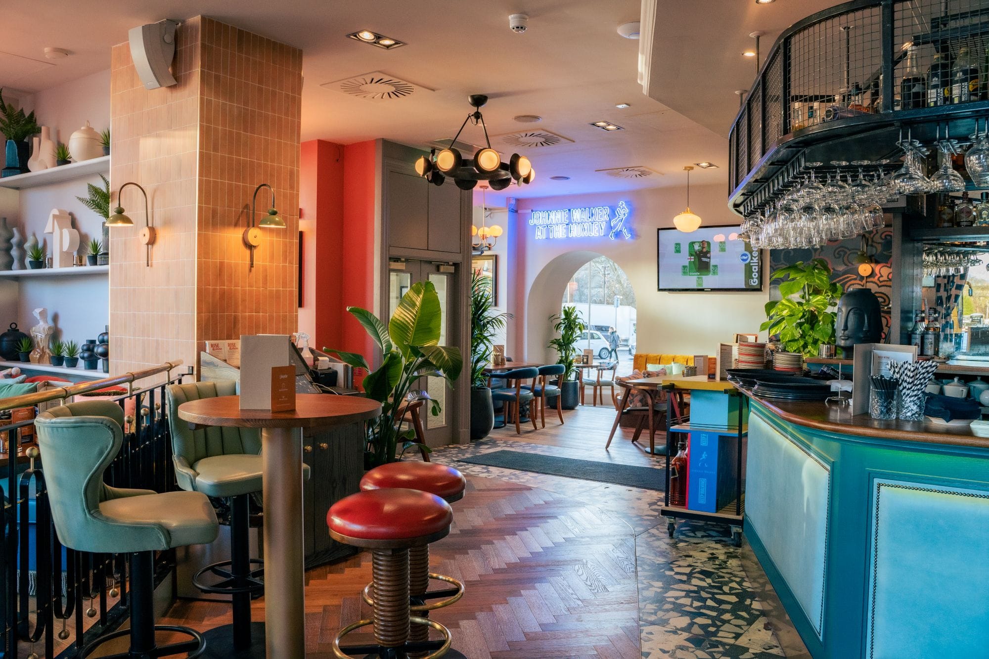 Nestled in Edinburgh’s historic West End, The Huxley serves breakfast, lunch and dinner with unbeatable views, making it a prime spot for people watching. Retro Americana seamlessly blends with Art Deco & vibrant 70s patterns to create a unique, bright & cosy interior. We can accommodate larger groups for buffet style Scottish food or drinks and canapes reception for up to 100 guests (mixture of seating and standing.