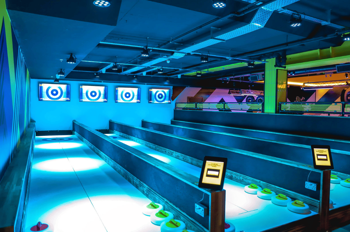 Fun, social, and built for group play, The Lodge is the perfect space for celebrations, team events, or casual get-togethers. With multiple lanes for curling, it’s designed to keep guests engaged and entertained. The Lodge accommodates up to 30 guests and features: -4 Ice-Free Curling Lanes Food and drinks packages can be added to keep energy levels high, including pizzas, chicken wings, tenders, and a selection of nibbles, alongside a range of drinks packages. A lively, social space for friendly competition and memorable moments with friends, family, or colleagues.