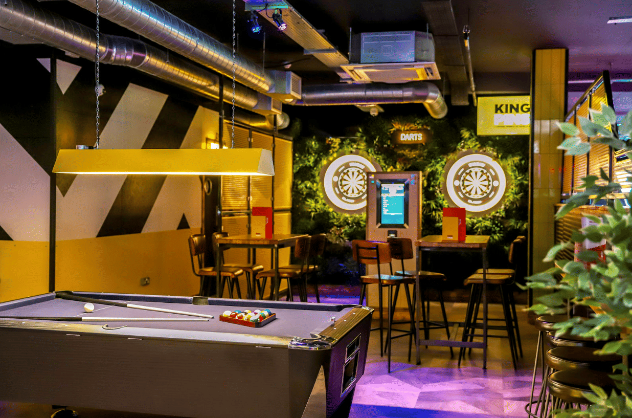 Fun, competitive, and perfect for group gatherings, The Bullseye Zone is designed to keep guests entertained and engaged. Ideal for birthdays, team events, or casual get-togethers, it offers everything you need for friendly competition and memorable moments. The Bullseye Zone accommodates up to 35 guests and features: -2 Tech Dart Oches -2 Pool Tables Food and drinks packages can be added to keep energy levels high, including pizzas, chicken wings, tenders, and a selection of nibbles, alongside a range of drinks packages. A lively, social space for nonstop fun with friends, family, or colleagues.