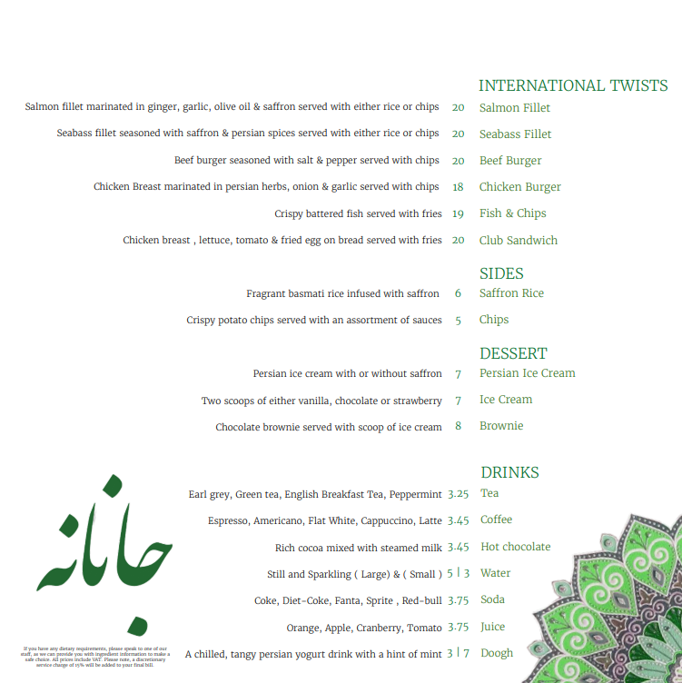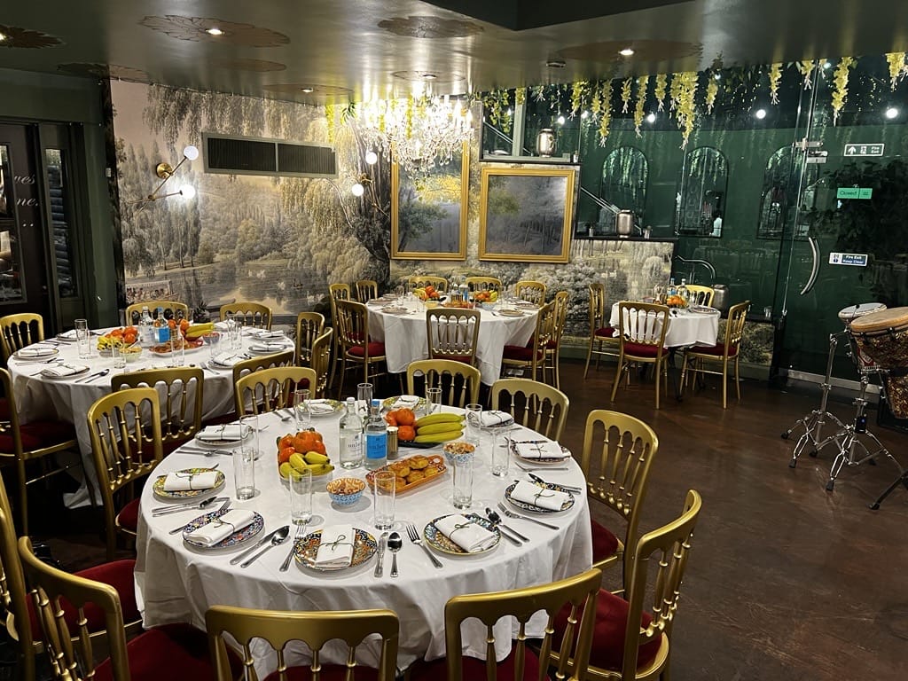 Looking for a unique and stylish event space in London? Welcome to the Conservatory at Jananeh, a truly unforgettable venue in the heart of the city, perfect for everything from private dining and baby showers to birthday brunches, afternoon teas, and elegant evening gatherings. Flooded with natural light, the Conservatory is a stunning glasshouse-style dining room that brings the outdoors in. With its glass ceiling, botanical décor, and garden-inspired walls, this space offers a magical blend of nature and elegance. Hanging wisteria, crystal chandeliers, and lush greenery create an Instagrammable backdrop ideal for capturing your special moments. Located just minutes from central London landmarks, Jananeh’s Conservatory is a hidden gem with boutique restaurant charm. The décor is bold yet welcoming, featuring luxurious mismatched velvet chairs, floral arrangements, and forest murals that wrap the room in a calming, whimsical atmosphere. The space is highly versatile and can be tailored to suit your event needs. Whether you’re looking for traditional round tables with dining chairs for a sit-down meal or a more open layout for a standing networking reception, our team can help transform the space to suit your vision. We’re happy to adapt the setup for anything from intimate dinners to lively drinks events. Whether you’re booking a private dining room in London or planning an intimate gathering, the Conservatory provides a flexible layout for both seated meals and standing receptions. Guests can enjoy handcrafted cocktails from the bar, which sits at the heart of the space, surrounded by elegant details and warm lighting. The Conservatory is more than just a restaurant space, it’s an experience. Every corner is designed to delight your senses and elevate your occasion. With a strong reputation for attentive service and a setting that’s both luxurious and relaxed, Jananeh is quickly becoming one of the most sought-after private hire venues in London.