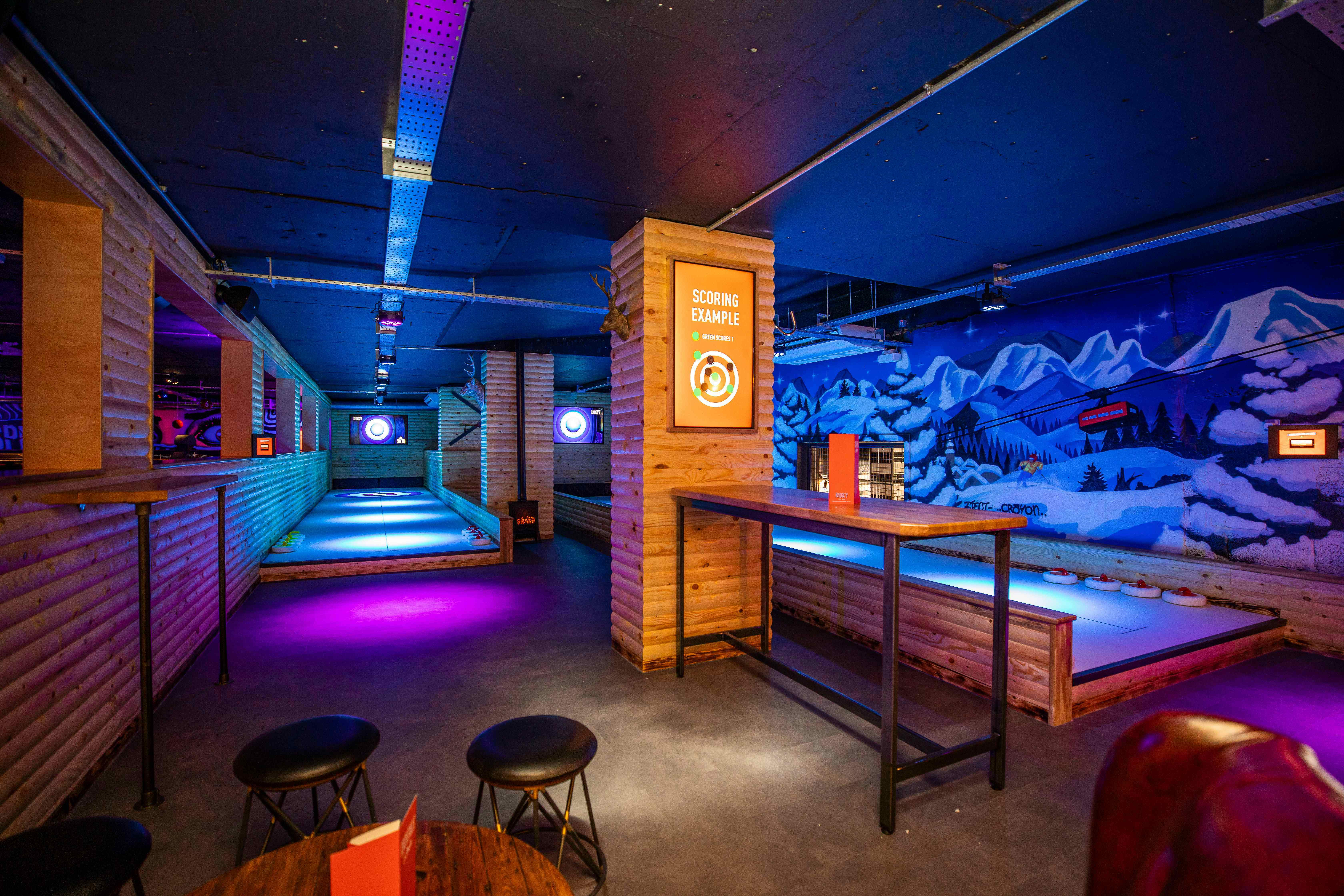 Perfect for strategic play, The Lodge offers a dedicated space for ice-free curling. Ideal for smaller groups, it encourages teamwork, friendly rivalry, and a relaxed pace that works brilliantly for social or corporate events. The Lodge accommodates up to 20 guests and features: -2 Ice-Free Curling Lanes You can also add on both food and drinks packages! There are delicious food options including pizza and other nibbles, as well as drinks packages including beer, cider, wines, spirits, prosecco or non-alcoholic options too.