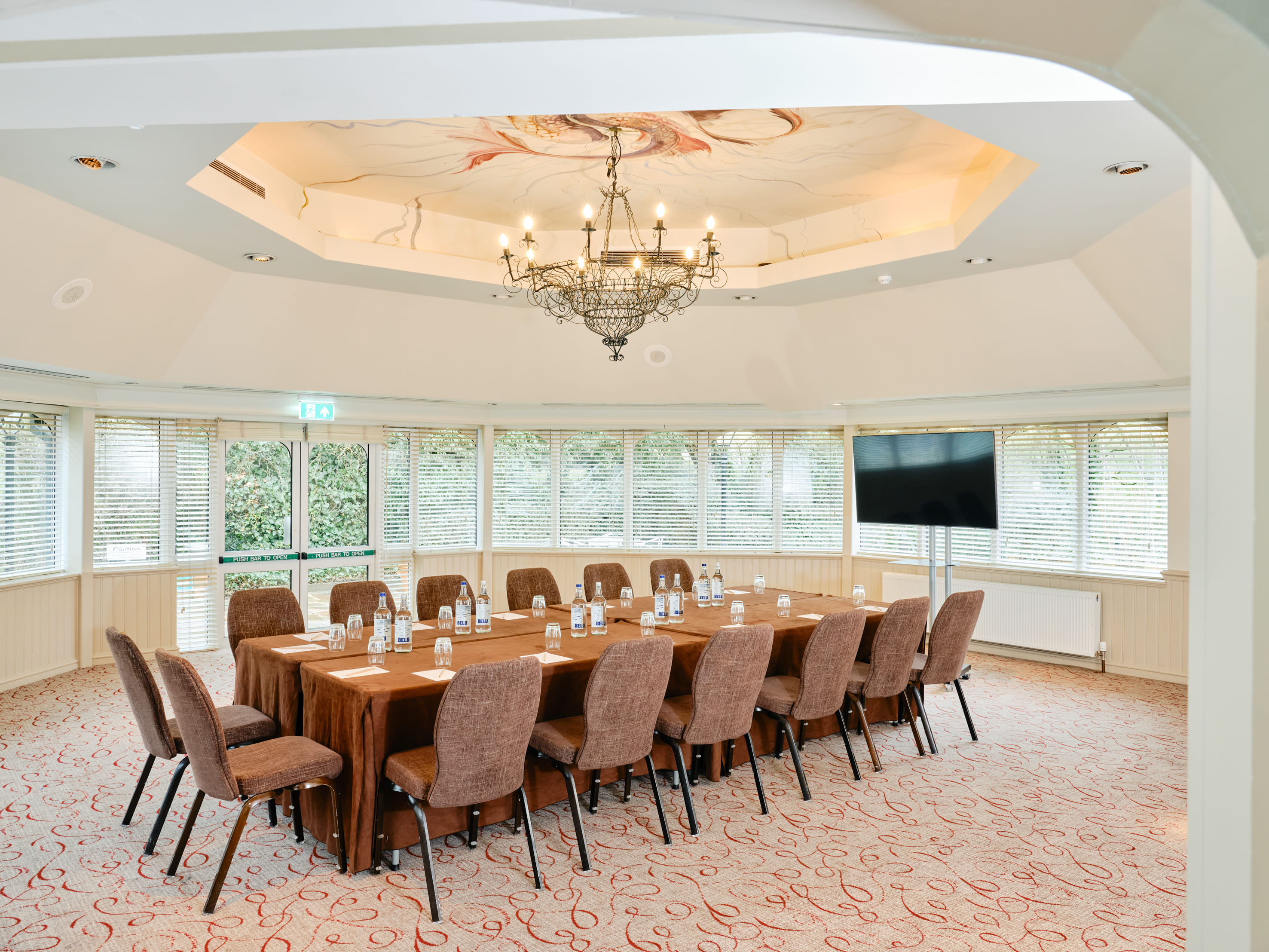 Elegant, bright and airy, the Greens is the perfect choice for small groups of 60 delegates. Set away from the hustle and bustle of the main hotel building, it offers privacy and peace and quiet along with access to a private patio area and views of the adjoining golf course and water feature. Perfect for SLT meetings, training days, private dining and more.