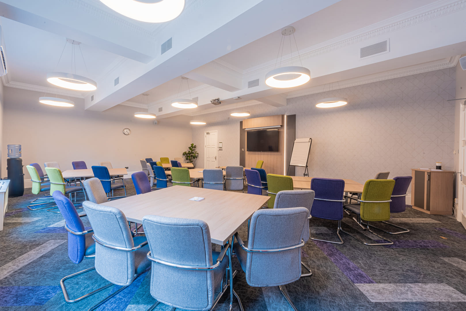 Hockenheim is one of our conference and training rooms. Hockenheim seats between 18 and 60 delegates with a range of room layouts and flexible seating options using ergonomical armchairs. With ample natural light, ventilation and well equipped inclusive features this room is perfect for your next meeting or training event. W 7.79m L 10.48m H 3.5m Area 81.6392m2