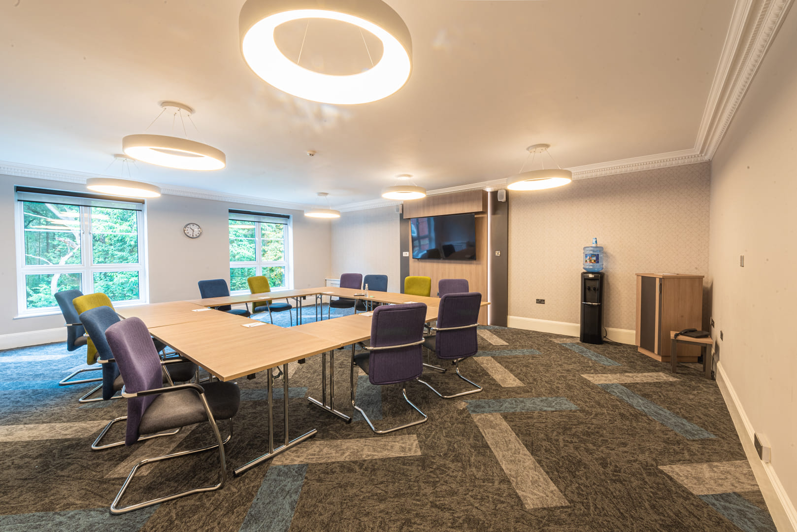 Chapel is one of our conference and training rooms. Chapel seats between 8 and 25 delegates with a range of room layouts and flexible seating options using ergonomical armchairs. With ample natural light, ventilation and well equipped inclusive features this room is perfect for your next meeting or training event. W 6.49m L 8.1m H 3.1m Area 52.569m2