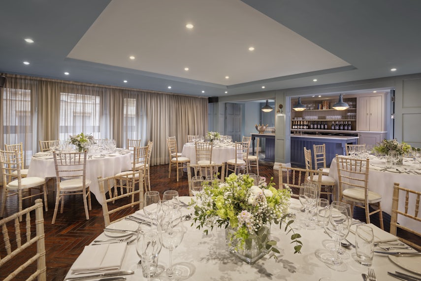 The Large Hub at King Street Townhouse offers a sophisticated setting, featuring elegant French doors, dark wooden flooring, and a stylish bar/pantry, making it a versatile space for any occasion. Ideal for both formal and informal events, it accommodates up to 50 guests, ensuring intimacy without compromising on atmosphere. Whether you're planning a celebratory gathering, a corporate meeting, or a private dinner, this adaptable space in the heart of the city provides the perfect blend of charm and convenience. With bespoke services and a dedicated team, your event will feel unique and unforgettable.