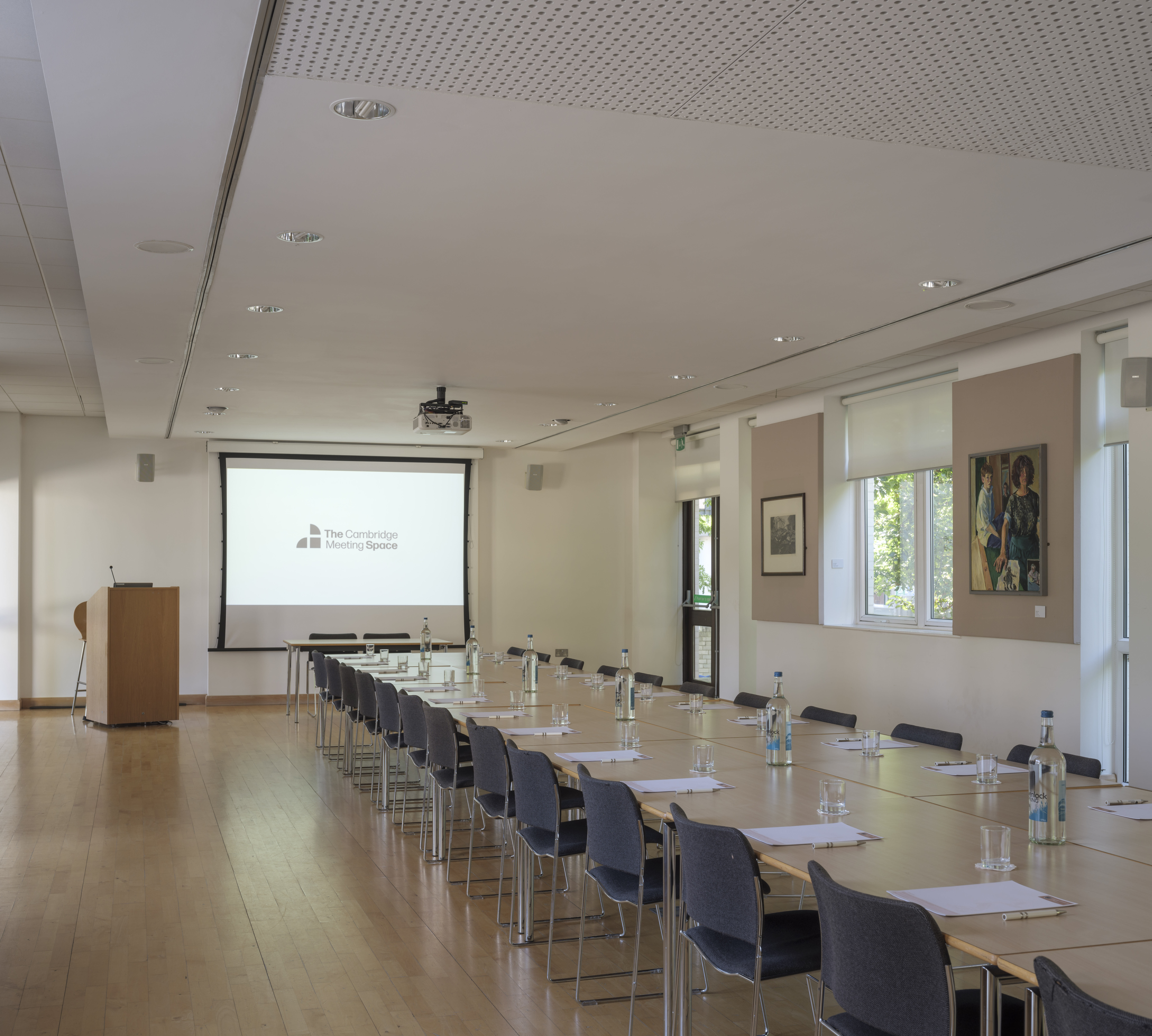 The Long Room is a large flat-floored meeting space located by the Porters' Lodge and next to the Jocelyn Bell Burnell Room and Council Room. This space is well-suited for presentations, large boardroom meetings, and corporate activities or away days. The room provide a flexible space, suitable for a variety of layouts and offers plenty of natural light.