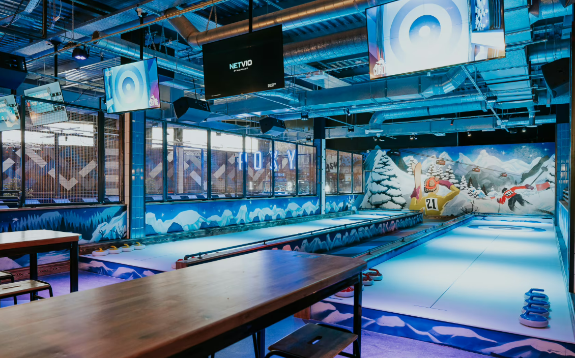 Relaxed yet competitive, The Lodge offers a unique twist on team play with ice-free curling. It’s an excellent choice for groups looking for something a little different, encouraging strategy, teamwork, and plenty of light-hearted rivalry in a comfortable setting. The Lodge accommodates up to 30 guests and features: -2 Ice-Free Curling Lanes With a focus on fun-first experiences and a refusal to do things by the book, Roxy Lanes is made for memorable events. From friendly rivalries to full-scale tournaments and sing-along moments, this is a venue that keeps guests engaged and talking long after the night is over.