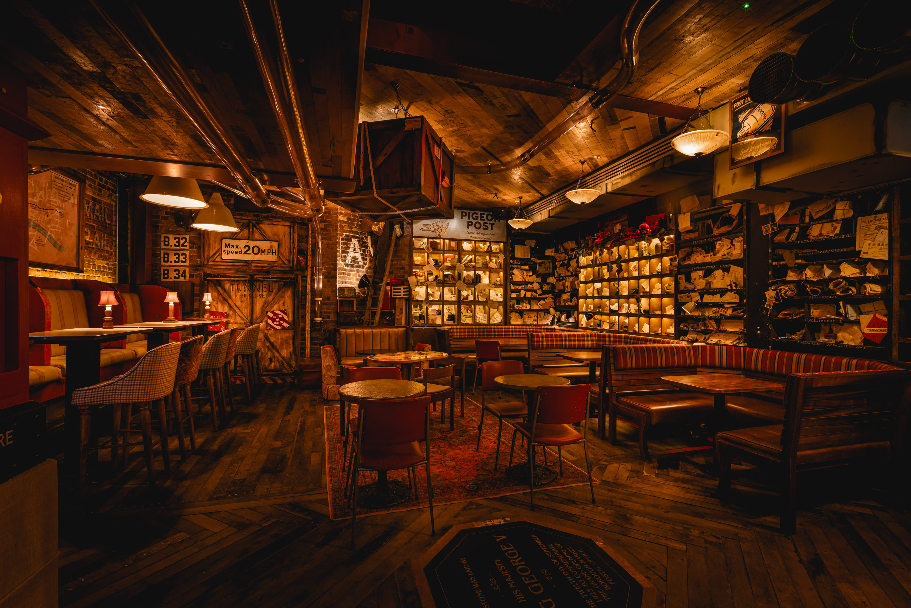Tucked within Cahoots Postal Office, The Sorting Depot is our semi-private area which offers a slice of 1940s mischief on the edge of Borough Market. Perfect for up to 60 guests standing, this dedicated space is ideal for birthday bashes, corporate soirées, engagement parties or any occasion that calls for high spirits and a little scandal. Surrounded by vintage post office décor, telegrams, parcels and a touch of “suspicious mail activity,” your guests will be transported straight into the swing of the wartime era. With access to our first-class cocktails, immersive theming and toe-tapping swing soundtrack, the Postal Office Area delivers an unforgettable celebration — stamped, sealed and served with a wink.