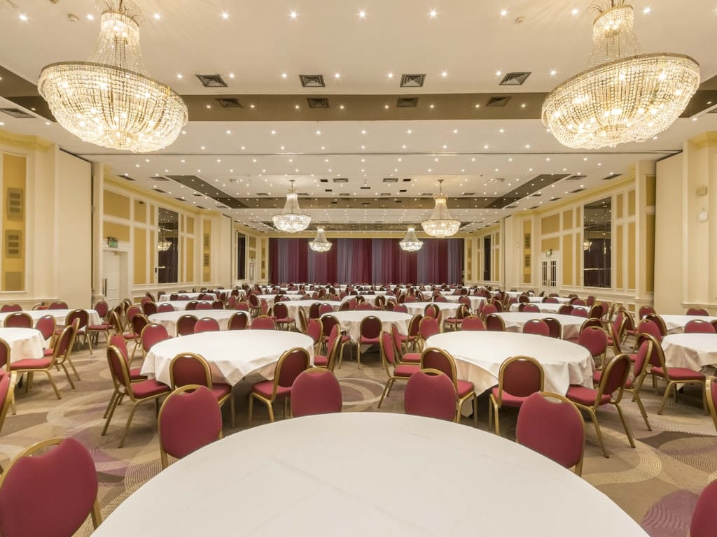 Aviation Suite The elegant décor and crystal chandeliers are unforgettable in our largest function room, which caters up to 700 guests in a theatre style layout or 550 for a gala dinner. With 266 en-suite rooms, on-site parking, and amenities designed for both business and leisure, Thistle Heathrow Terminal 5 is the ideal choice for your stay. Our 13 meeting rooms can accommodate up to 700 guests, equipped with modern AV technology for productive events. After a busy day, unwind in our Aviator Sports Bar & Restaurant, offering live sports and a diverse menu. For added convenience, our Stay, Park & Fly package ensures a smooth experience, with easy transfers to the terminal via Heathrow Pods or our shuttle bus. Whether you're organising a business event or simply just catching a flight, we offer the space to meet, and room to be you.