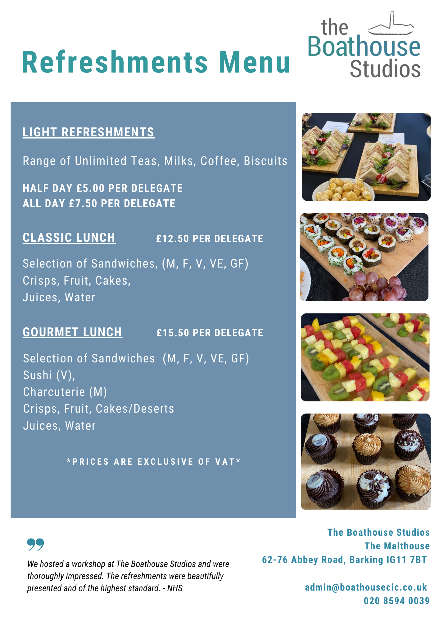 For larger events, combine our two riverfront studios for up to 200 capacity. Designed for meetings, training days, workshops and away days, the space offers a calm and characterful alternative to traditional corporate venues. With exposed brick, abundant natural light and a baby grand piano, The Randells provides an inspiring environment that supports focus, creativity and meaningful conversation. The studio is particularly well suited to: • Team meetings and strategy days • Training sessions and seminars • Workshops and facilitation sessions • Away days and reflective gatherings Unlike standard conference rooms, The Boathouse offers a relational and hosted experience. Guests benefit from a welcoming atmosphere, flexible layouts and thoughtful support from a professional team who understand the importance of tone, flow and wellbeing in professional gatherings. Located in East London with excellent transport links, The Combined Studios is ideal for organisations, councils, charities and creative teams seeking a distinctive, professional yet warm setting. Many organisations return to The Boathouse Studios for its unique balance of professionalism and creative atmosphere, offering a setting that feels both productive and human.