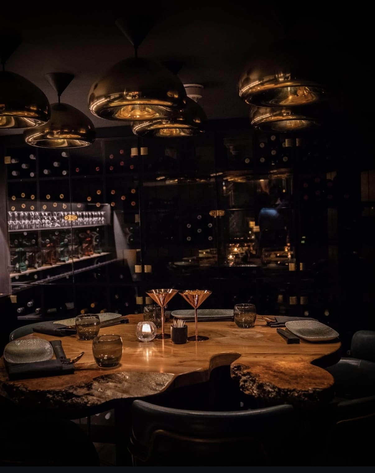 Our Retreat Room is ideal for meetings and intimate gatherings, accommodating up to 5 guests. Centred around a striking elm table, The Retreat offers a private setting defined by elegance and tranquillity. A sliding glass door allows the space to be fully enclosed, creating an even more exclusive and private atmosphere when desired. Perfect for hosting focused meetings or impressing your guests in a more secluded environment, The Retreat is a refined choice for intimate dining and gatherings in London.