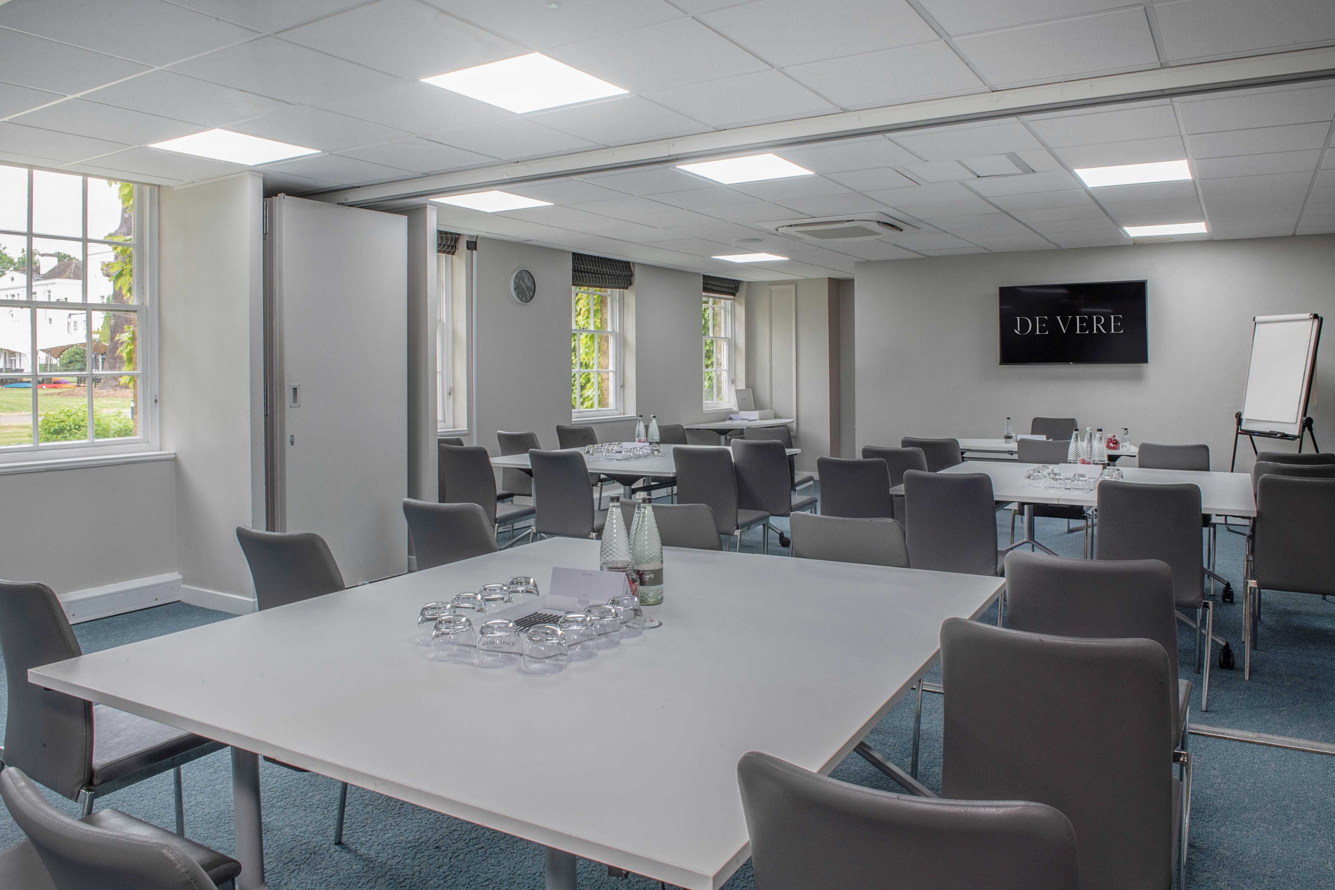 Located in the main building, Buckingham 4A is a professional meeting space created when the Buckingham 4 is partitioned. This versatile room benefits from plenty of natural daylight and is perfectly suited for focused sessions, accommodating up to 35 delegates in a theatre-style setup or 18 for a boardroom meeting. Attendees also enjoy easy access to a private coffee lounge for refreshments.
