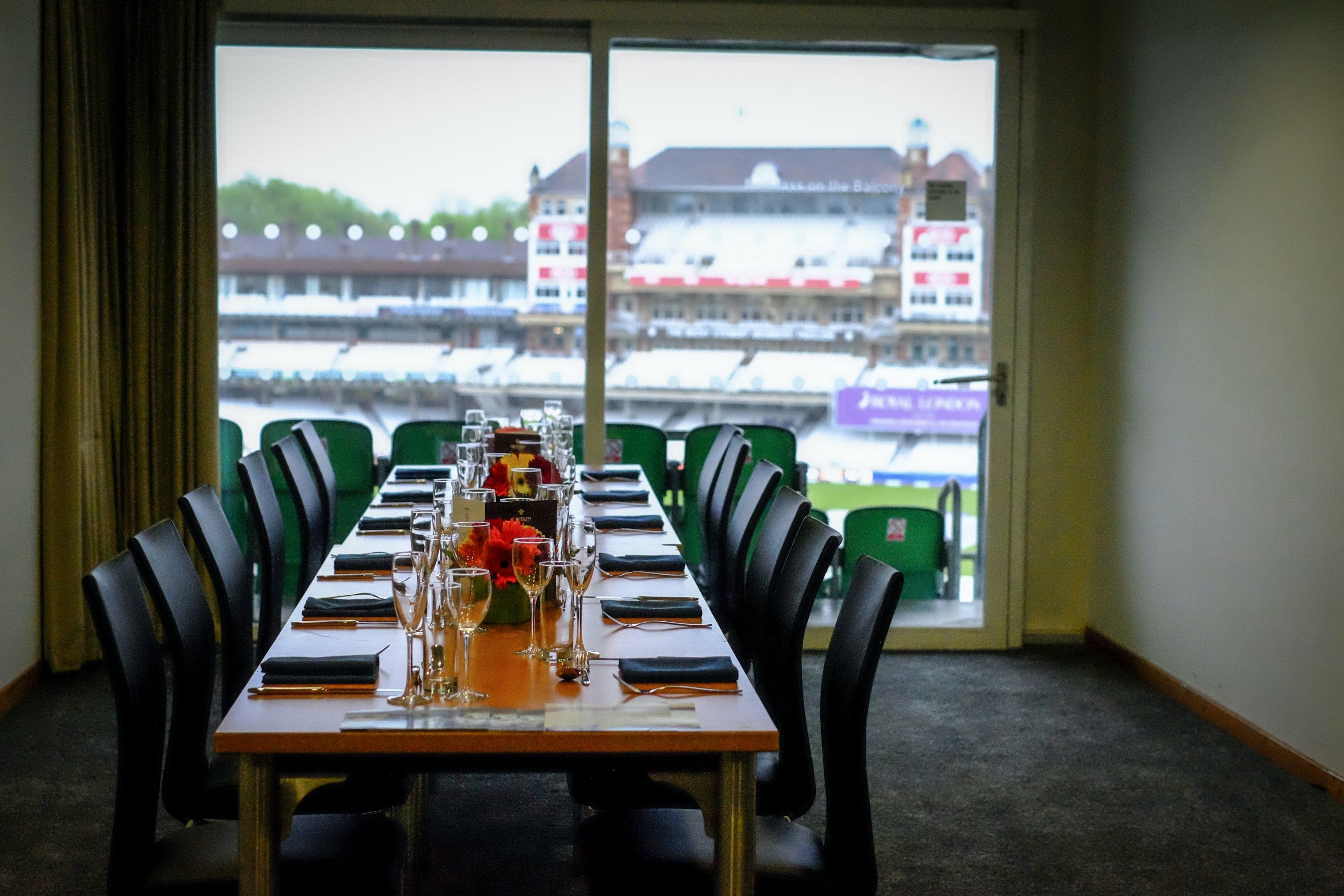 Hire a Single Executive Box at the Kia Oval Cricket Stadium for one of the best corporate meeting options London has to offer. There are over 25 Executive Boxes at the Kia Oval, accommodating up to 24 guests each. These suites, on the third floor, are perfect for smaller board meetings, interview rooms, staff offices or breakout rooms for larger events. All of the boxes include a plasma screen for presentations and have access to individual balconies with seats overlooking the pitch. There is air-conditioning and Wi-Fi in every box.