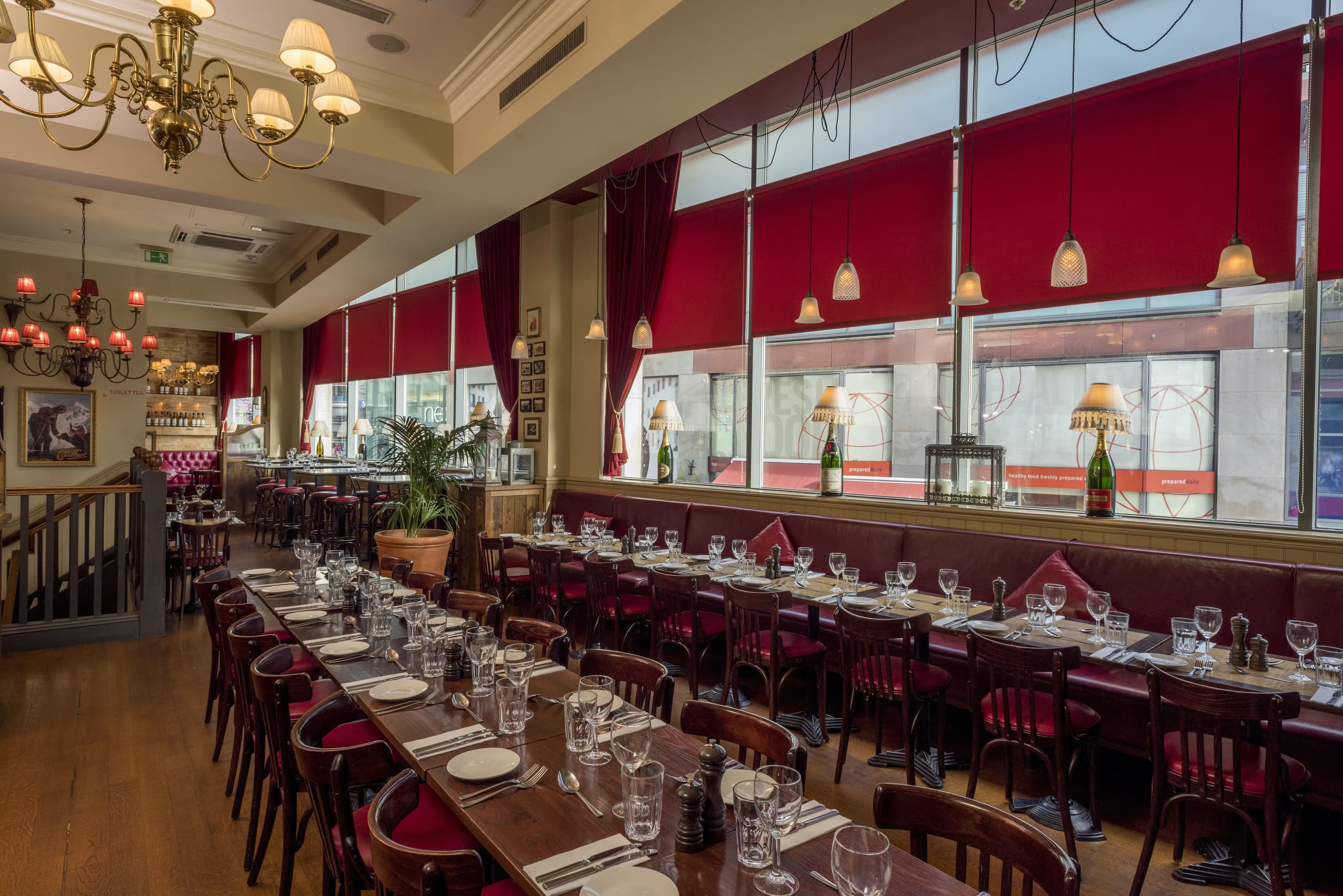 **Hire the Zot Bar and Restaurant at Belgo Nottingham for a great party venue!** Belgo Nottingham is based in Nottingham’s lace market in the heart of the city and is spread over two levels. The ground floor has floor to ceiling windows overlooking an impressive Belgian market inspired outside seating area – perfect all year around and fitted with heaters. The airy interior is kitted out with an industrial décor, quirky feature lighting, big banquette seating and reclaimed wood booths and eclectic artwork. Revellers can settle for the day in the first floor ‘Zot Bar’ and really get stuck into Belgo’s incredible beer selection, including Brugse Zot of course! There is nowhere else in Nottingham you can taste this exciting beer lovingly brewed at the Halve Maan Brewery in Bruges.