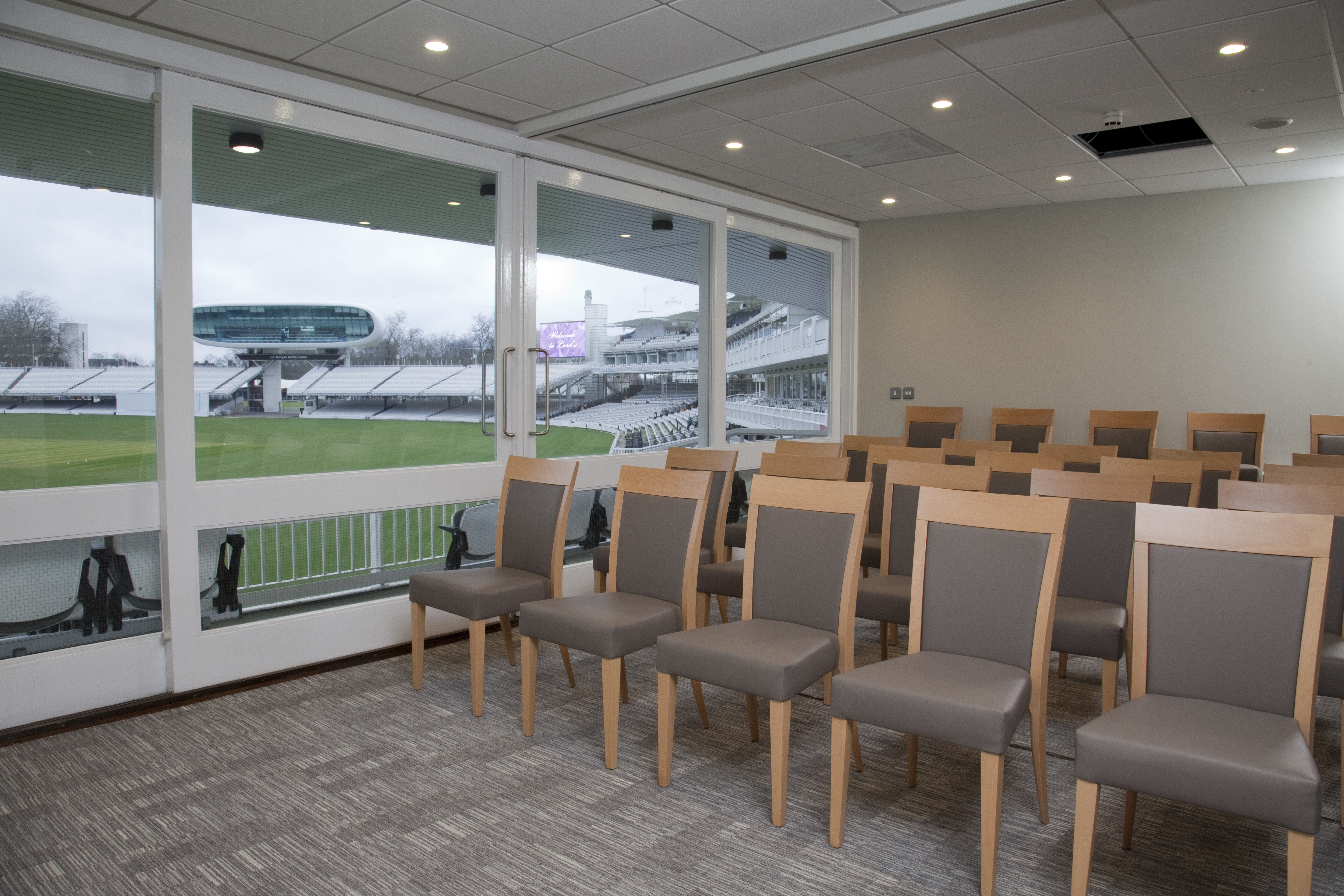 **Need a unique meeting room to hire in London that'll really help boost motivation - then look no further than the Tavern Meeting Rooms at Lord’s Cricket Ground.** The newly refurbished Tavern Meeting Rooms are on the second tier of the Tavern Stand, with magnificent views of the pitch from the balcony. On match days, these ten rooms are the private boxes from which celebrity guests can sip champagne and view the game. Throughout the rest of the year, they are an outstanding space for syndicate rooms or for smaller meetings.