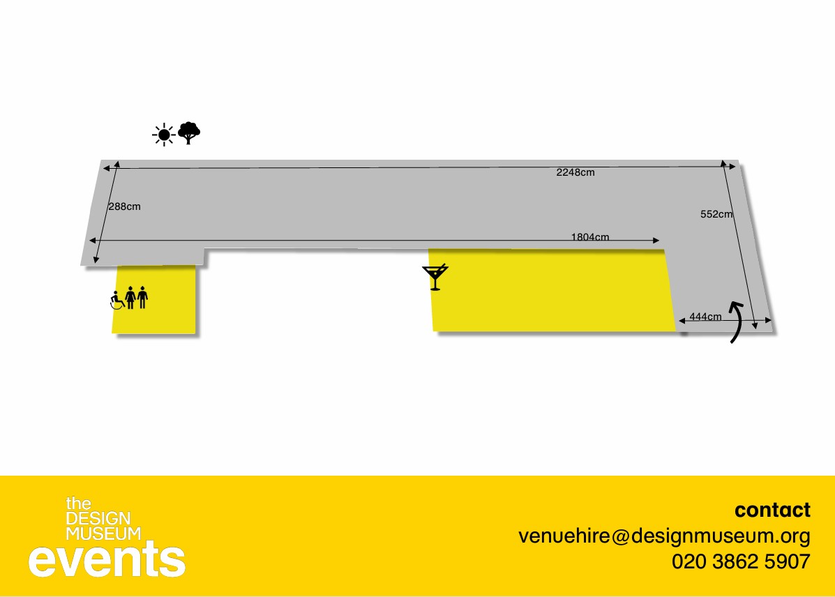 The Chumsri and Luqman Lounge is located on the top floor of the Museum and offers stunning views across Holland Park. The room features a fixed pewter bar, Vitra designed furniture and displays 38 Philip Sayer portraits of designers. Capacities: Dining 32 Standing 45 Theatre 34 Classroom/Boardroom 34 Hire Fee: Daytime 08:30-17:30 £3,000 +VAT Evening 18:30-22:00 £4,000 +VAT Full Day 08:30-22:00 £6,000 +VAT Currently offering 20% off venue hire for bookings before 31st March 2026. Get in touch with the events team to find out more.
