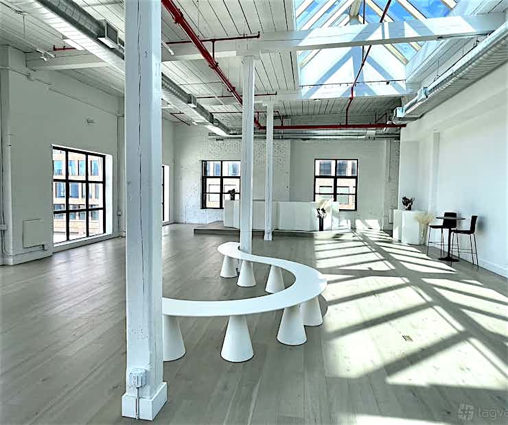 Located on the 9th floor of The William Vale Hotel, this coworking and meeting space offers an eclectic venue for your next team event in Brooklyn. The Malin features 3 meeting rooms with traditional boardroom seating and a library for more casual chats, all with 360 views of Brooklyn and Manhattan.